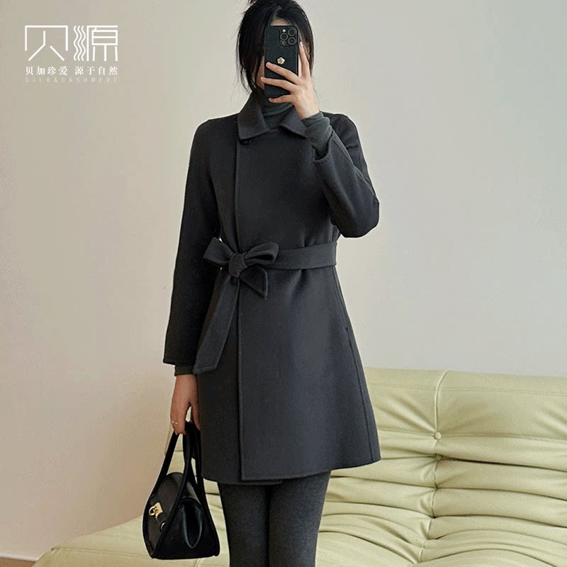贝源高端驼色双面羊绒大衣女短款2025新款小个子正肩羊毛毛呢外套