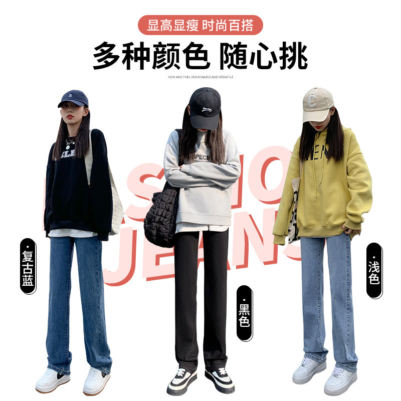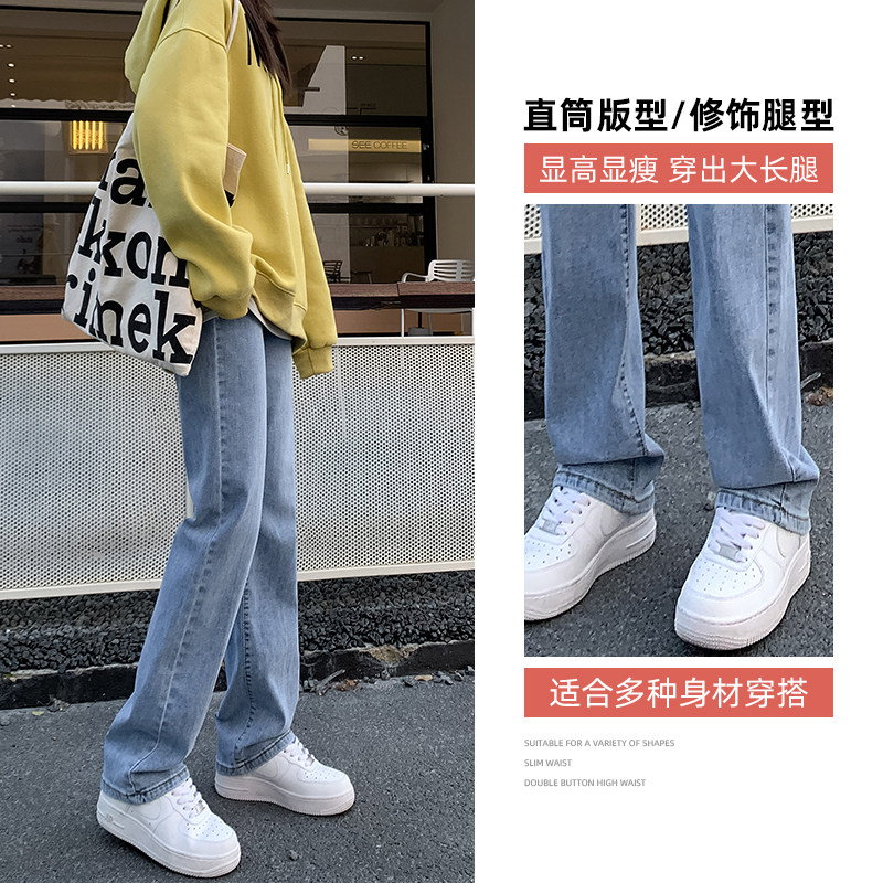 浅蓝色直筒牛仔裤女2026年新款夏季高腰显瘦宽松百搭小个子烟管裤