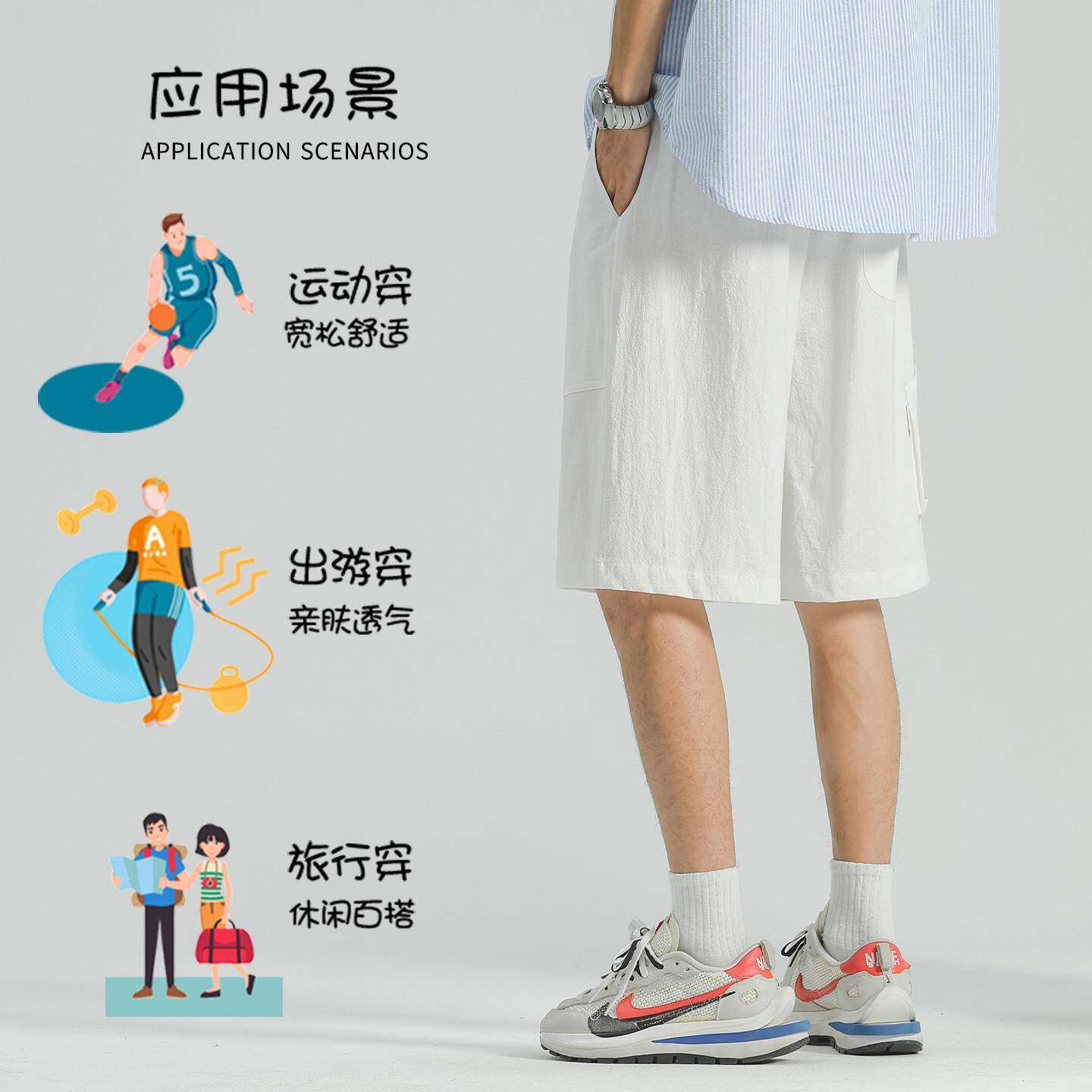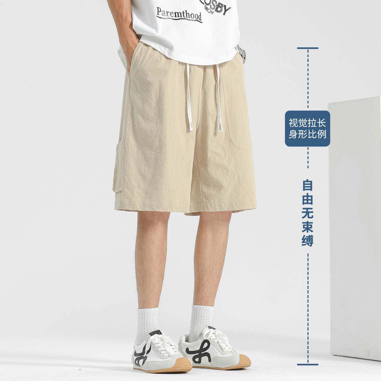 纯棉短裤男款夏季薄款亚麻男裤休闲五分裤棉麻裤男生运动直筒中裤