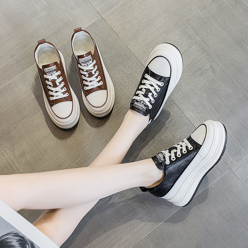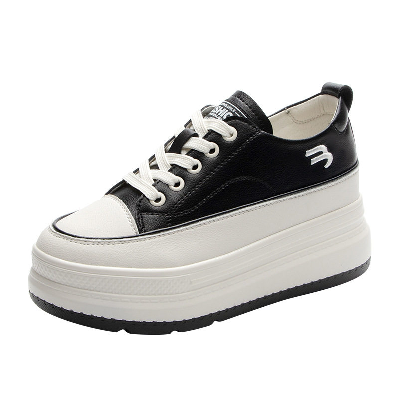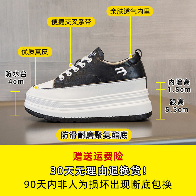 夏天内增高女鞋2025爆款新款真皮小白鞋女厚底板鞋松糕休闲小黑鞋