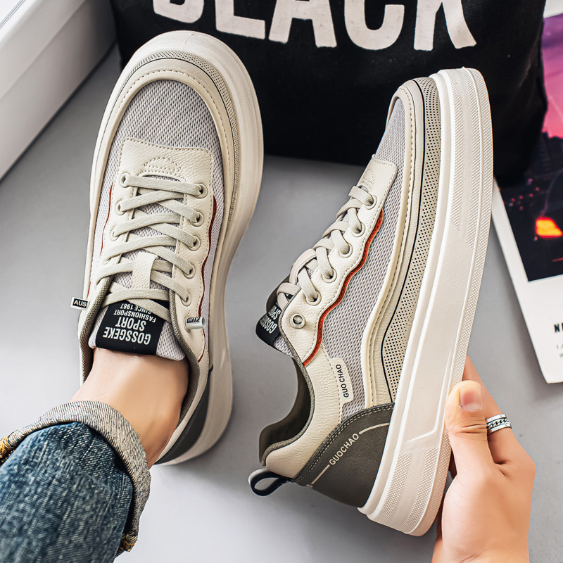 男鞋春季高级感百搭休闲低帮平底板鞋男生防滑运动厚底增高小白鞋