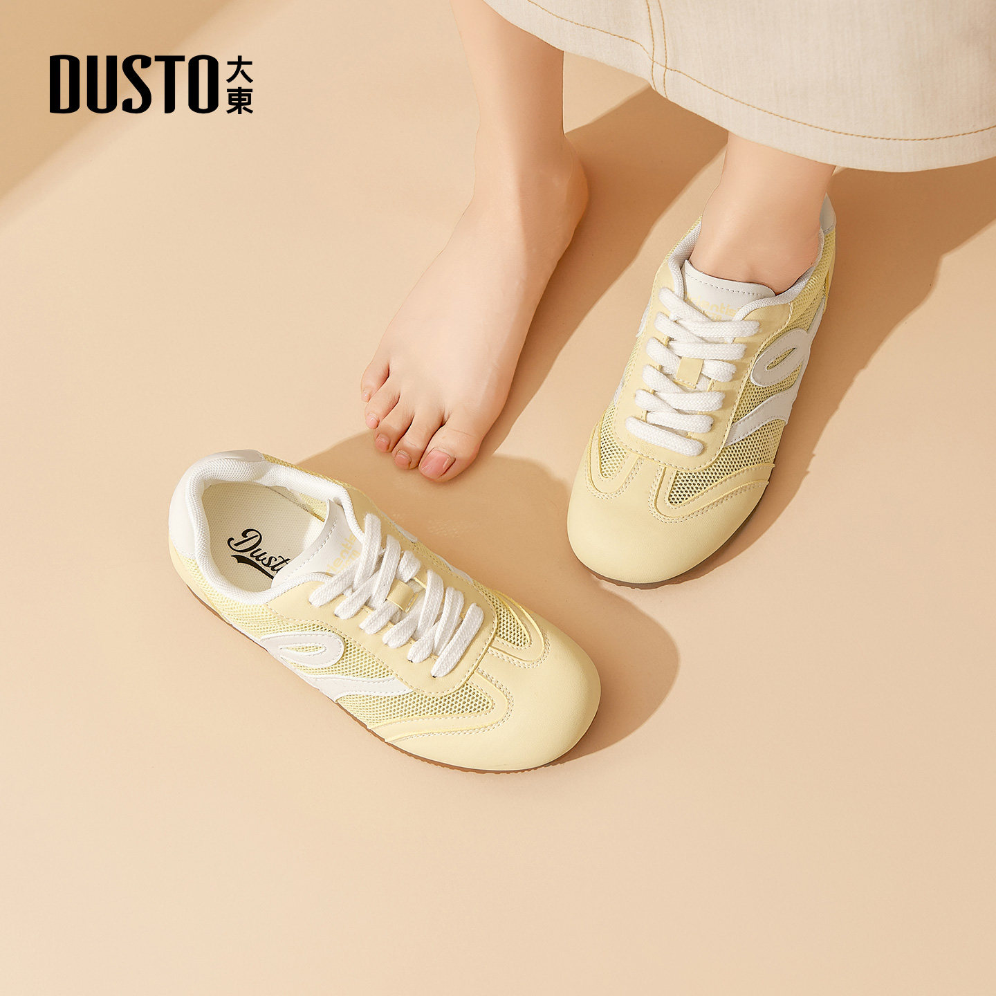 大东黄色德训鞋女款2026新款春季网面透气平底休闲鞋子超火阿甘鞋