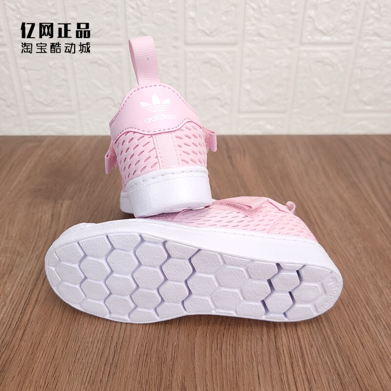 Adidas 三叶草 女童夏季舒适网面透气软底贝壳头运动休闲鞋HQ4055