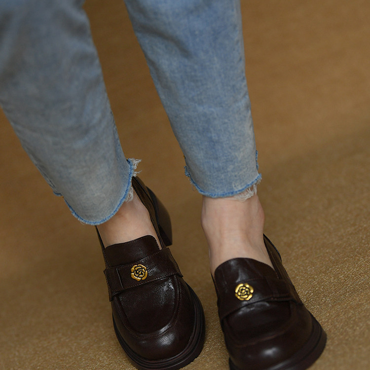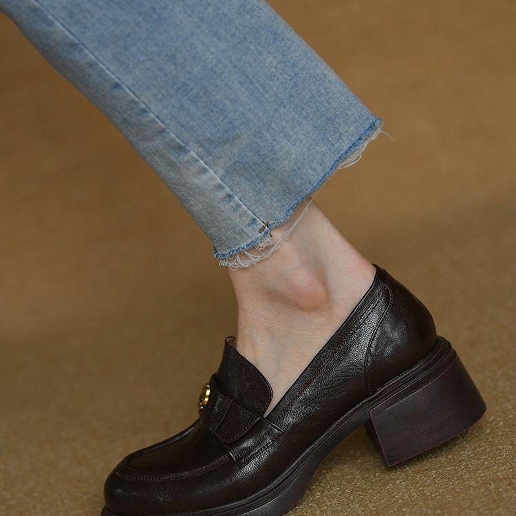 皮厚先生 2025春秋新款中口乐福鞋粗跟小皮鞋 圆头女鞋中跟单鞋女