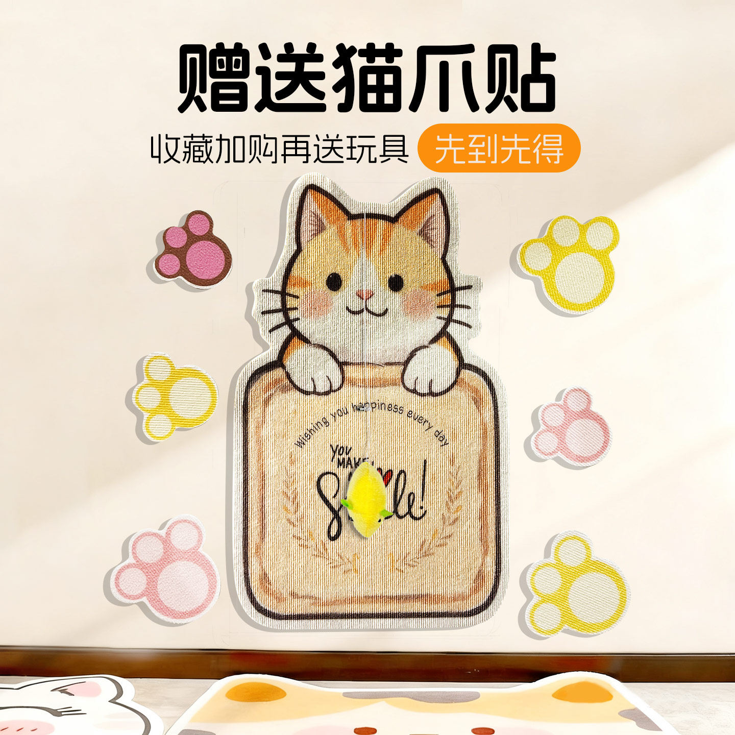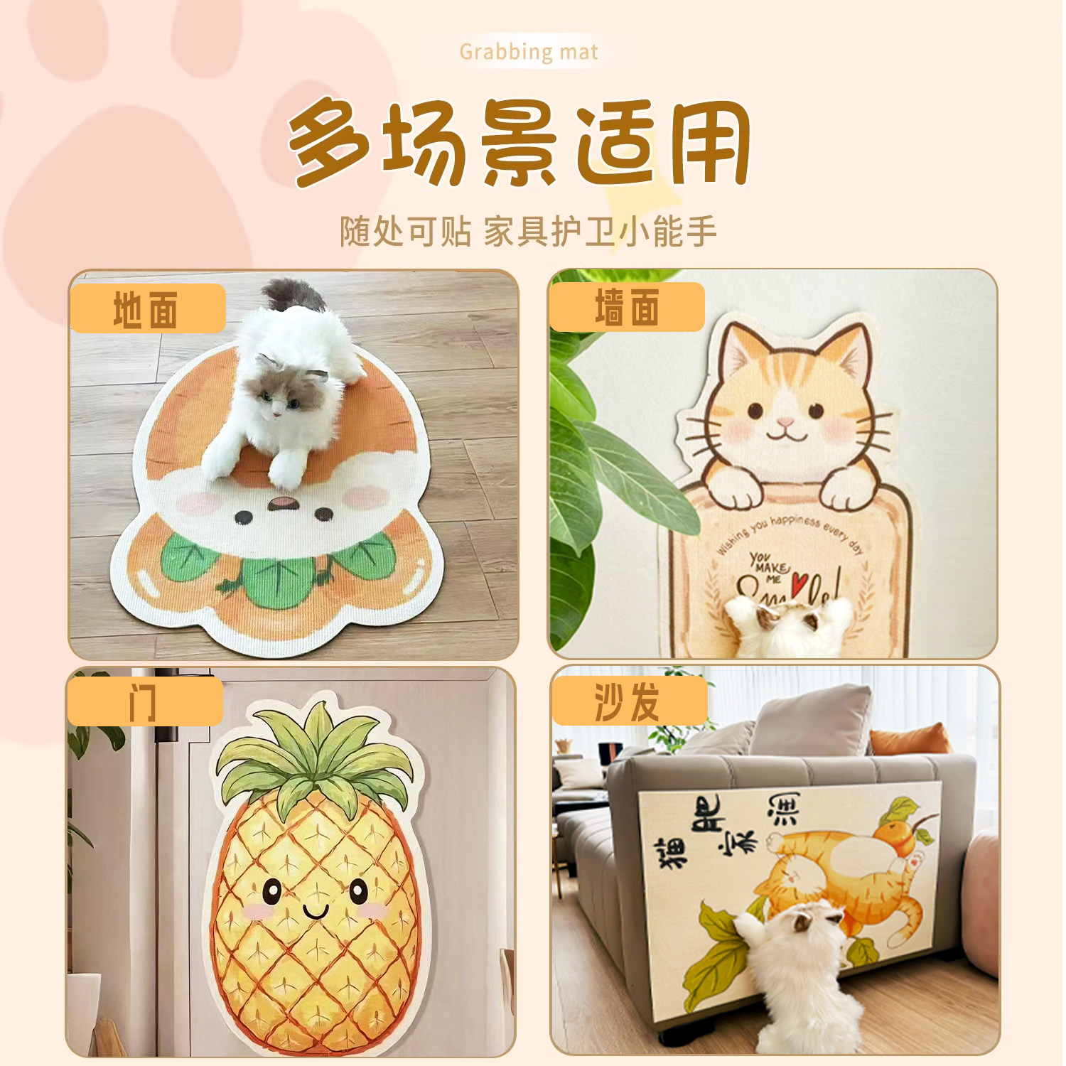 萌怪兽门墙上猫抓板贴墙立式耐磨防猫抓粘贴式墙贴不掉屑猫咪玩具