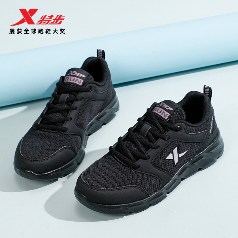特步女鞋2026新款夏跑步鞋女轻便减震运动鞋女款妈妈黑色网面鞋子
