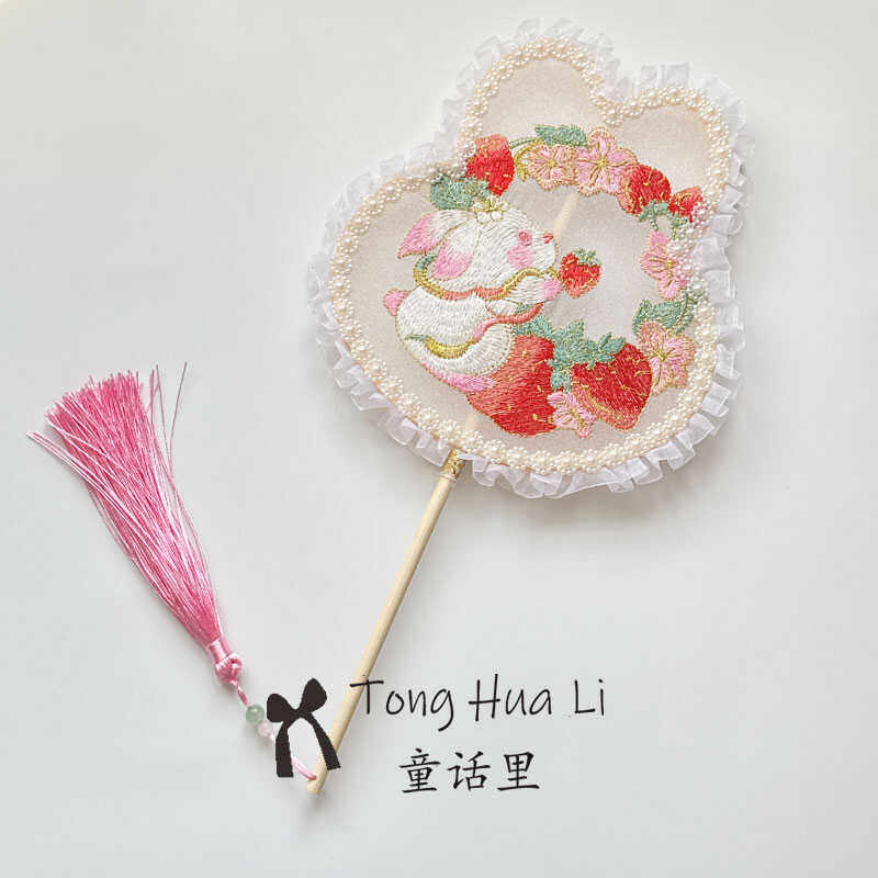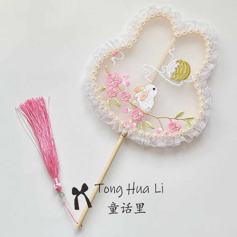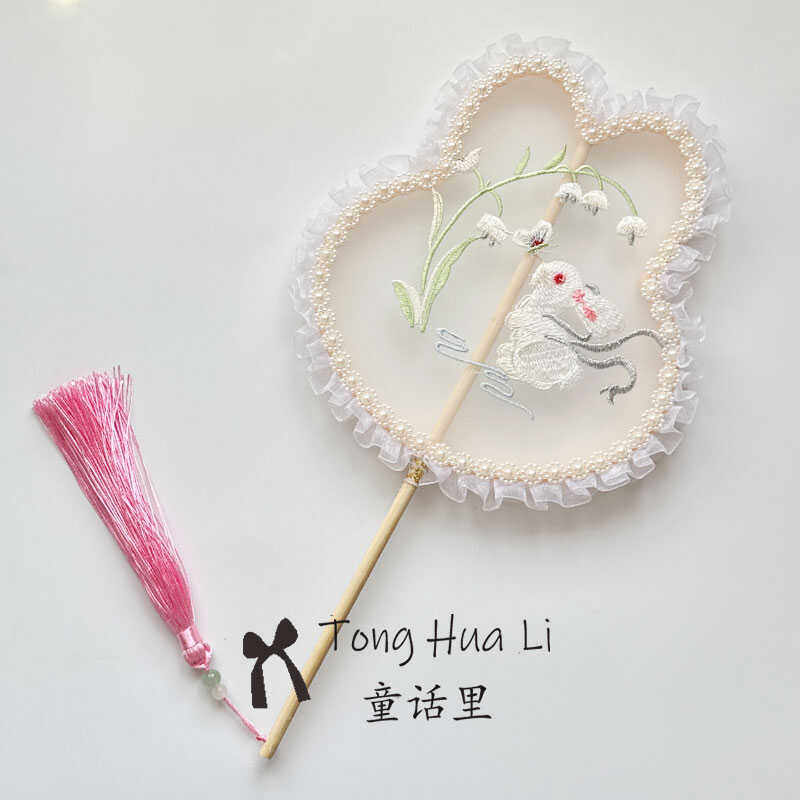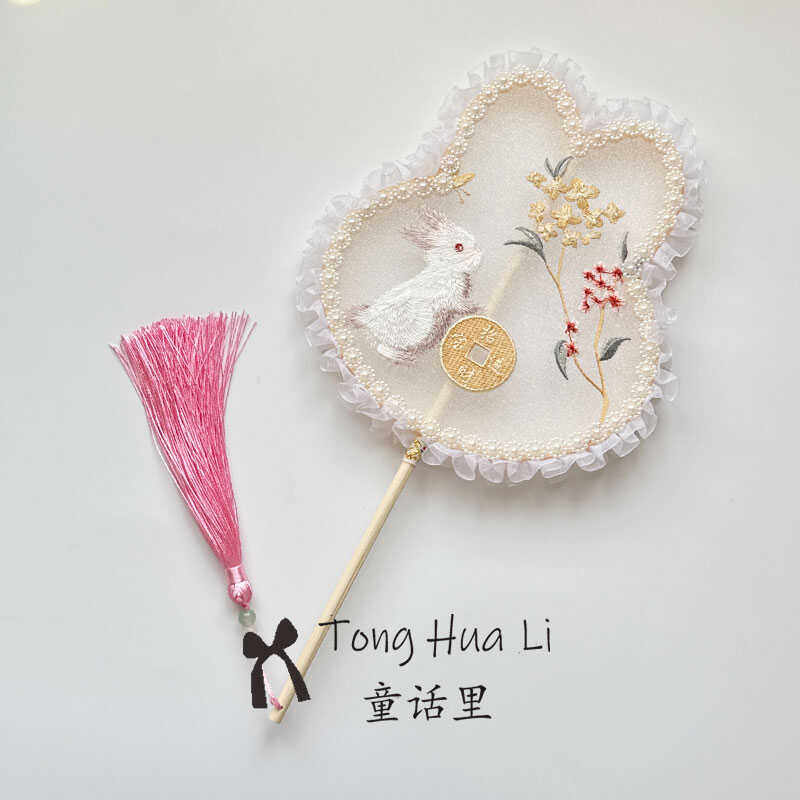刺绣团扇古风女旗袍汉服舞蹈专用扇中国风成人儿童手持兔耳小团扇