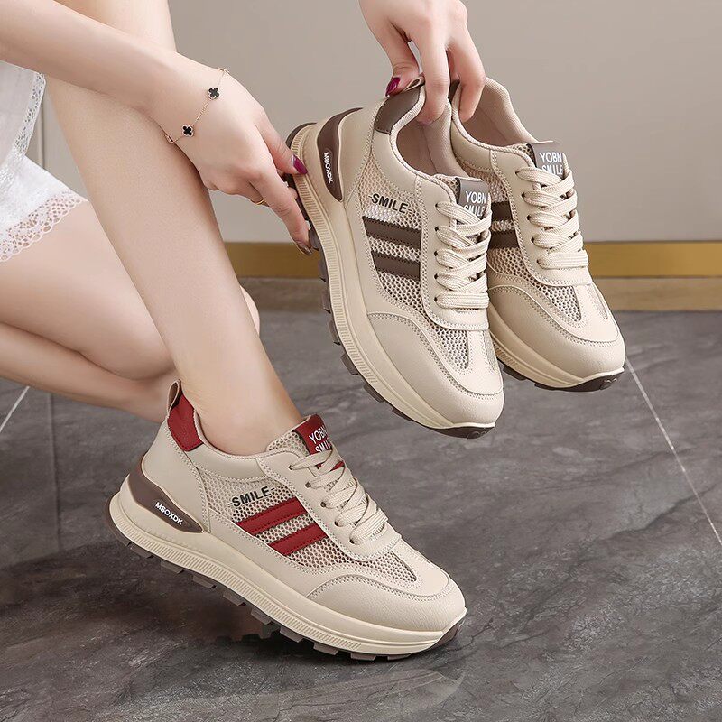 阿甘女鞋休闲显脚小厚底运动鞋2025新款夏季网面透气老爹鞋不累脚