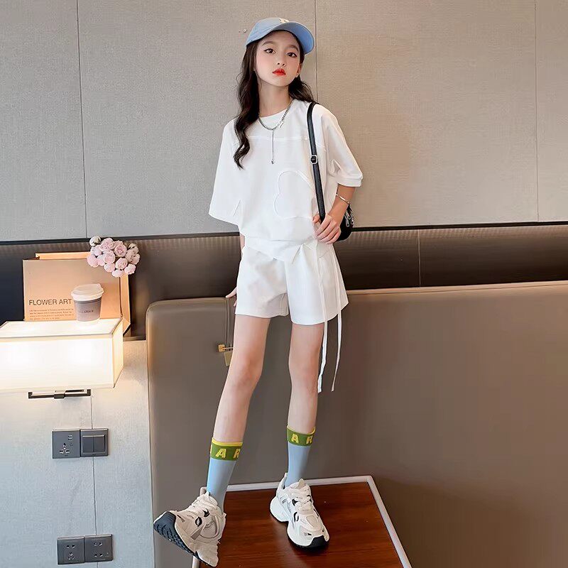 奥莱女童夏季套装2026新款中大童网红时髦洋气甜酷短袖短裤两件套