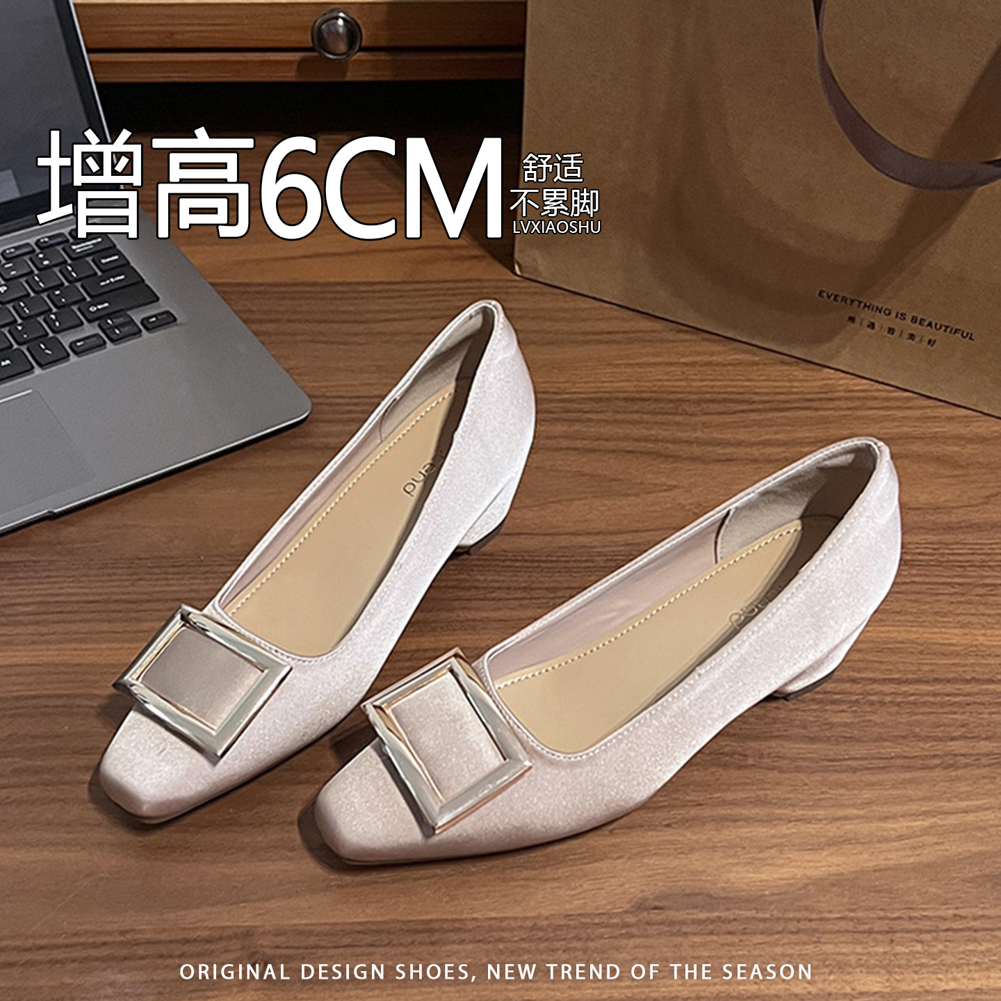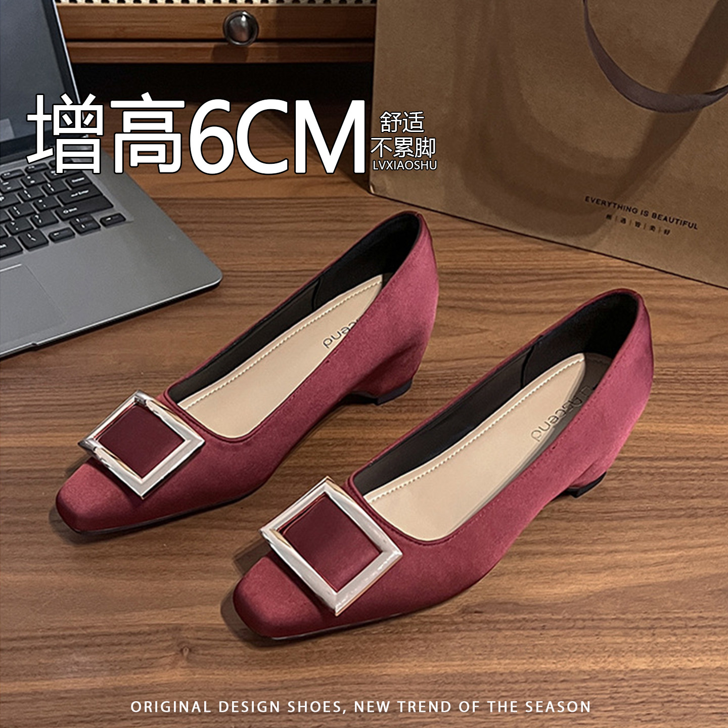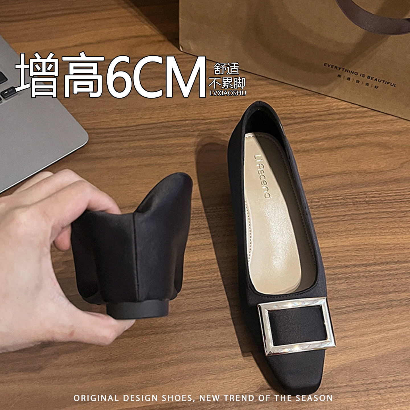 法式内增高方头玛丽珍鞋女2026新款气质优雅百搭坡跟防滑浅口单鞋