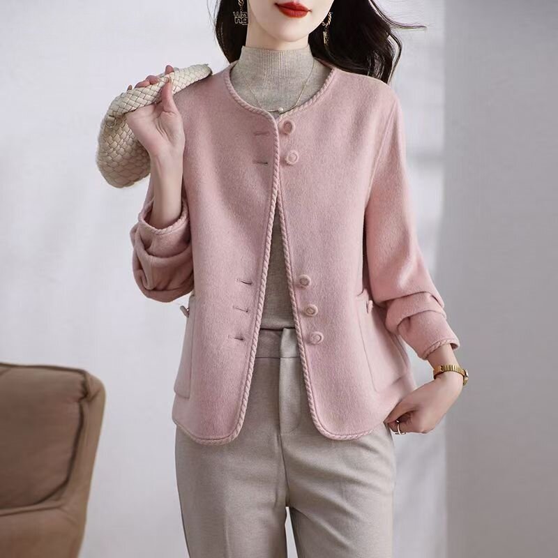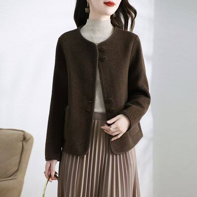 2025秋冬新款时尚百搭双面绒大衣外套短款女小香风双面羊毛呢上衣