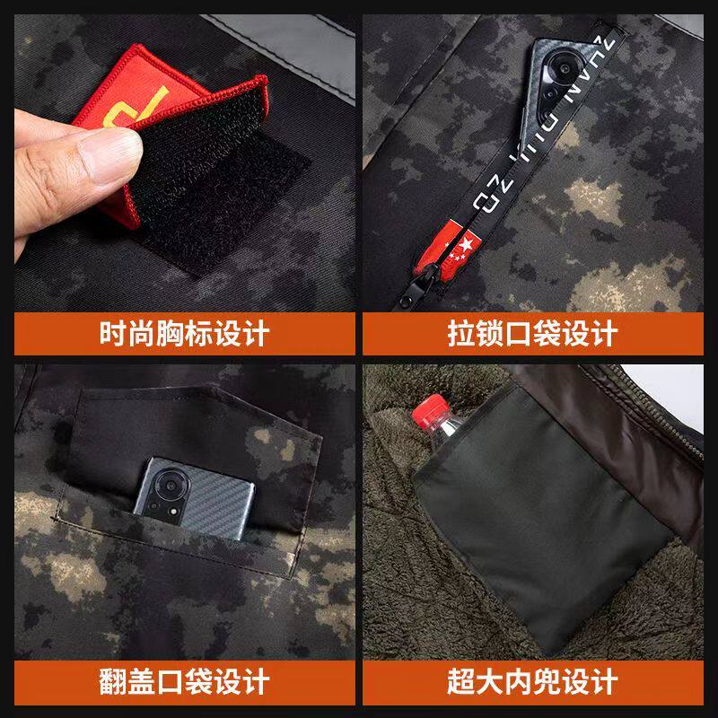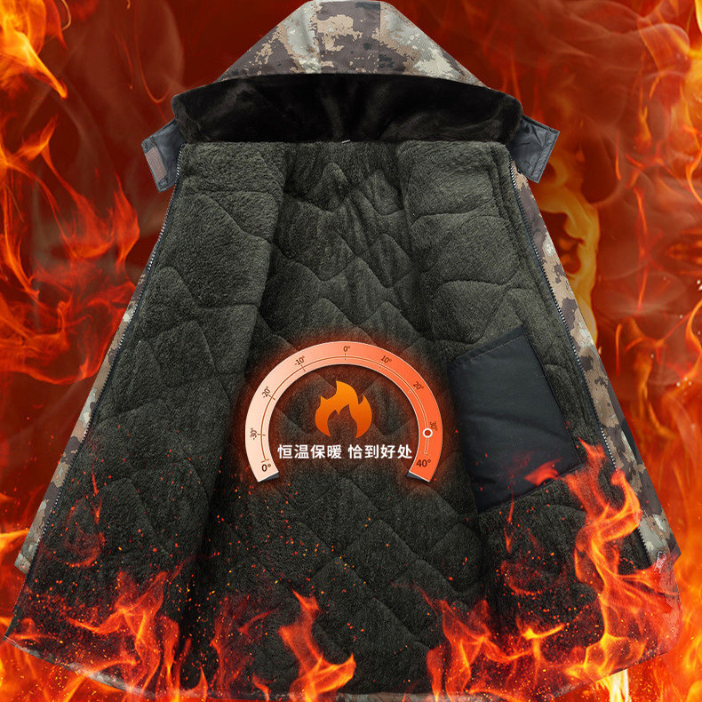 冬季加绒加厚棉服防水棉衣迷彩军大衣中长款防寒保暖棉衣外套冷库