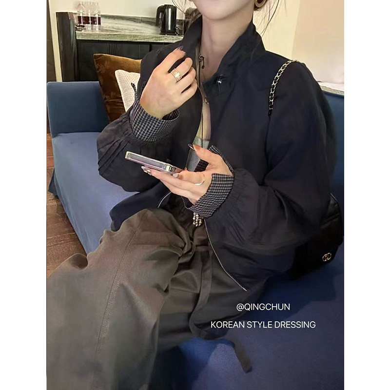 抽绳短外套女款2026春秋季新款慵懒风宽松百搭小个子夹克上衣