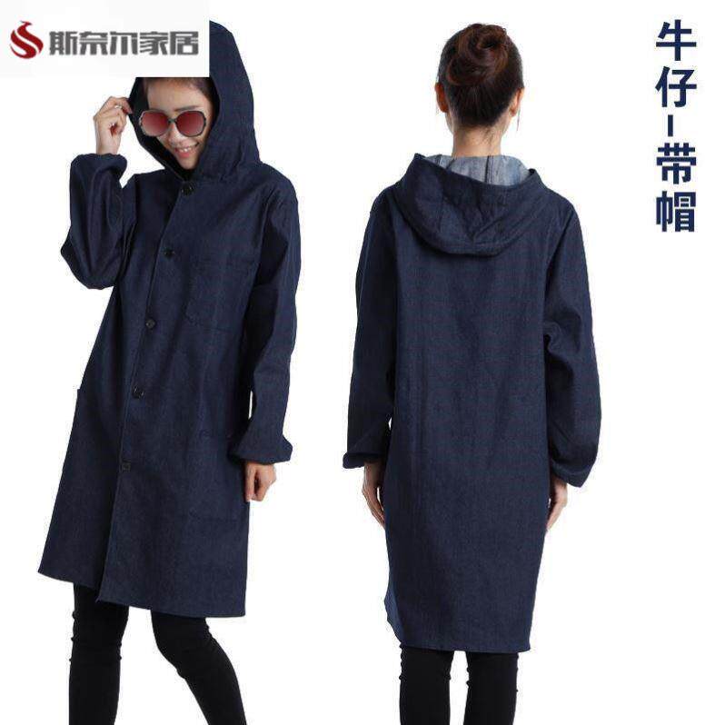 带帽棉牛仔大褂工作服男长款耐脏防尘外套服耐磨劳保服长褂男装