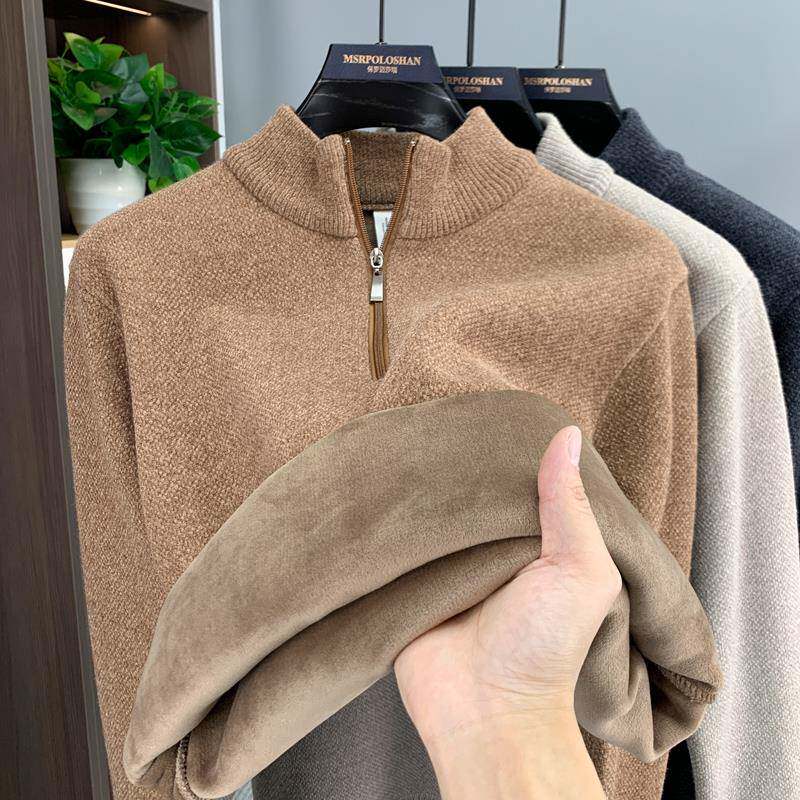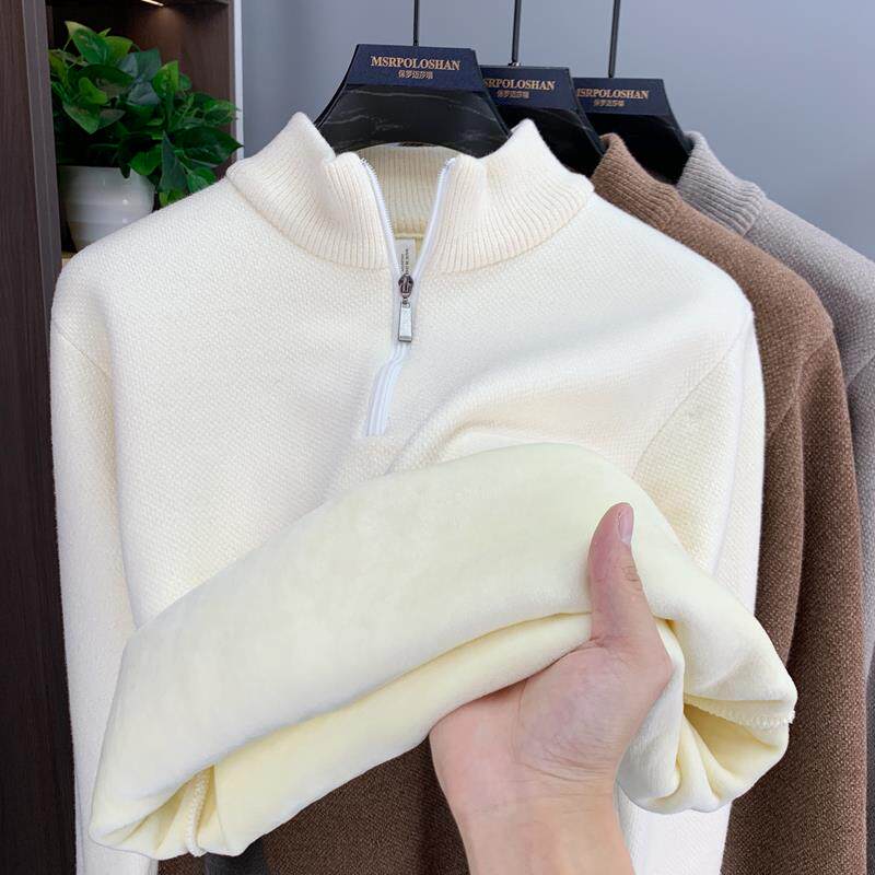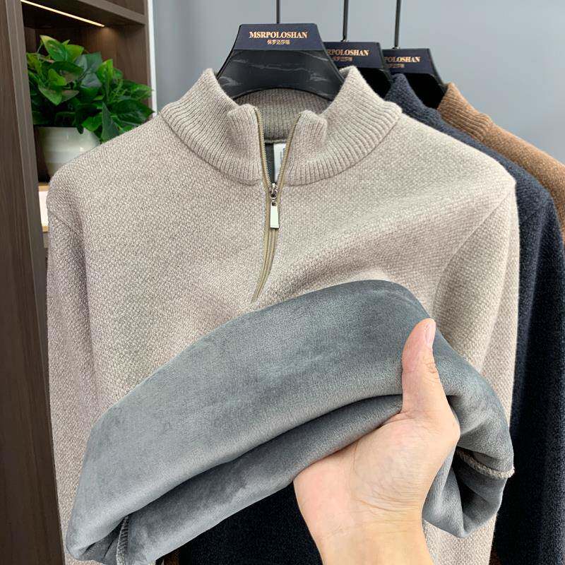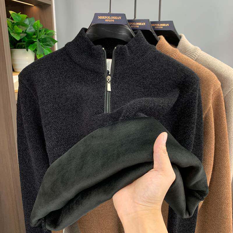 半高领男士毛衣加绒加厚冬季保暖套头卫衣男款一体绒打底针织衫潮