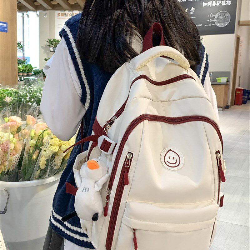 女生学生书包森系百搭初中高颜值耐脏纯色系大容量小众背包2024