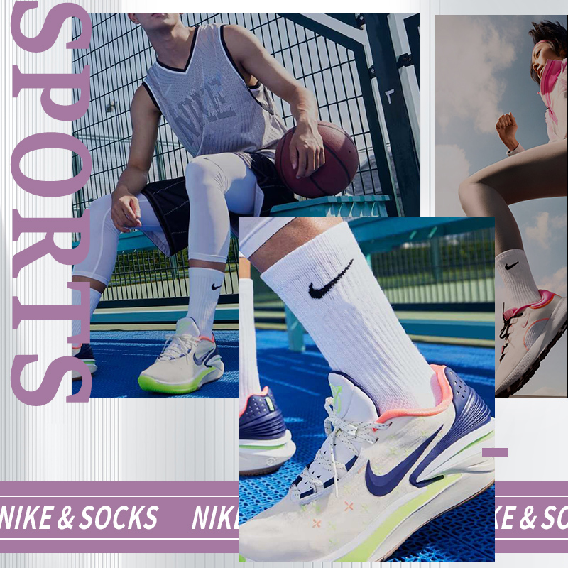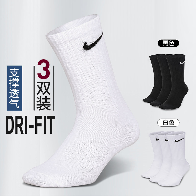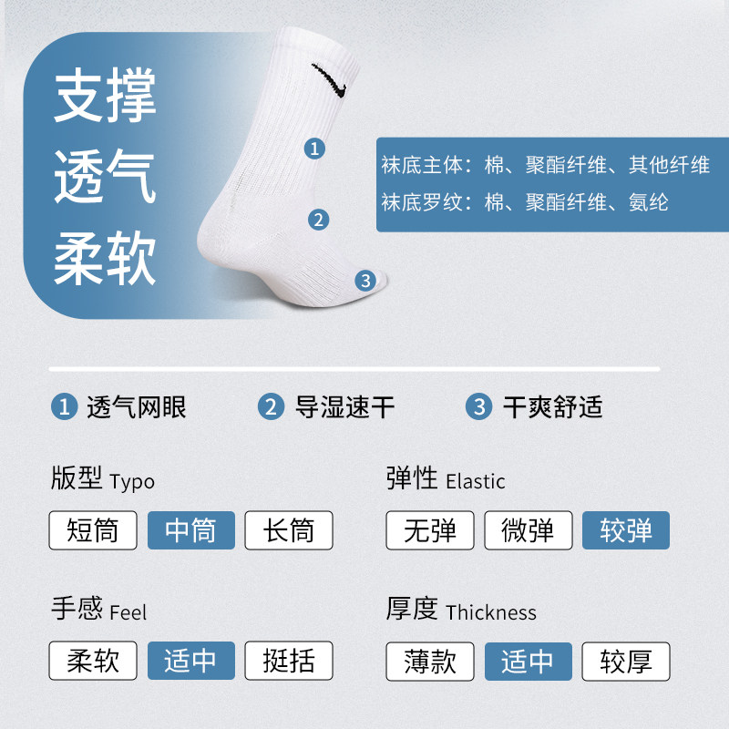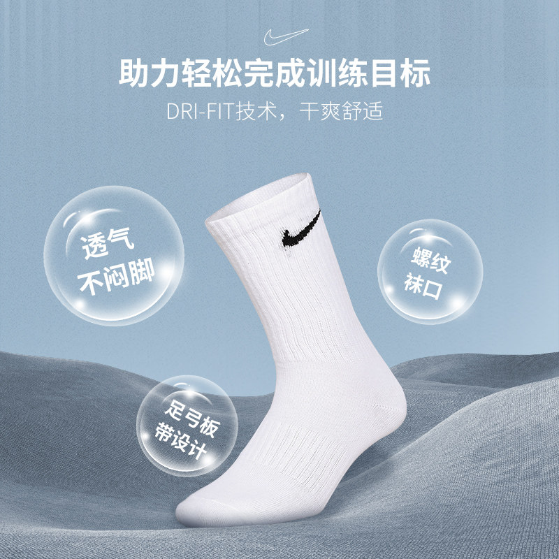 NIKE正品耐克袜子男女运动休闲袜中筒高筒防滑训练袜三双装SX7676