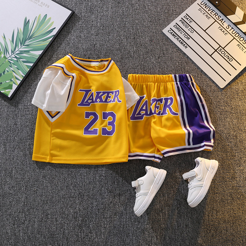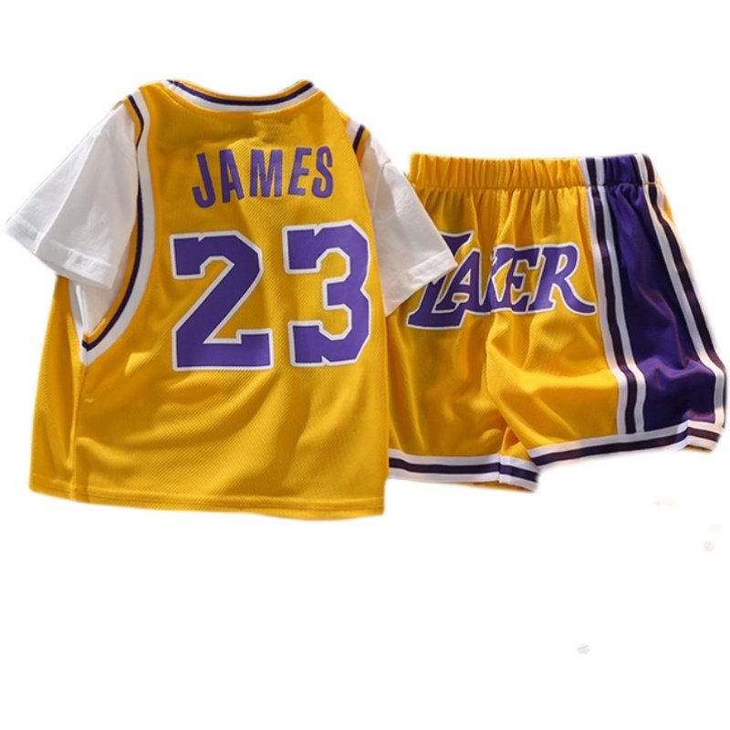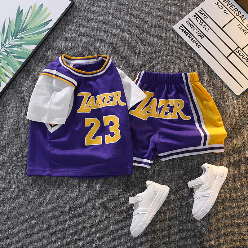 儿童短袖假两件篮球服婴儿分体速干球衣运动套装23号詹姆斯训练服