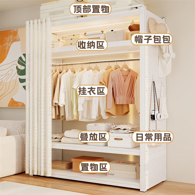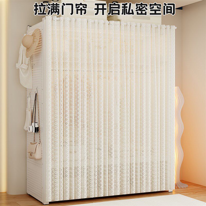 货架卧室出租房组装洞洞板金属钢制衣橱防尘帘挂衣架