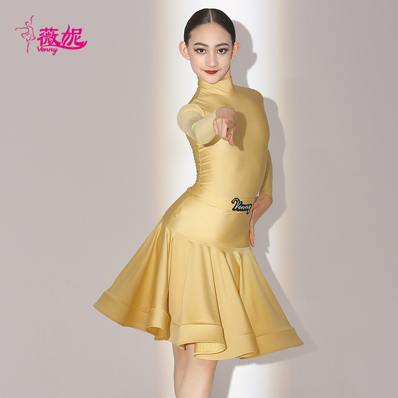 薇妮拉丁舞服新款少儿国标舞舞裙女童高领定制专业比赛分体规定服