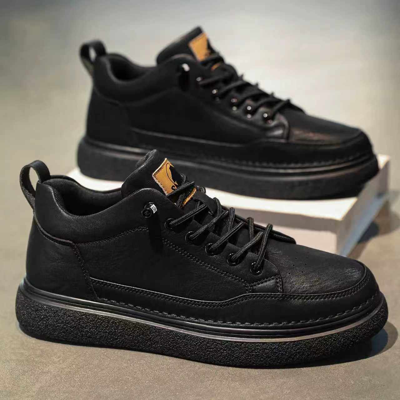 男鞋春季新款透气防水防滑板鞋男潮流百搭黑色皮鞋商务休闲运动鞋