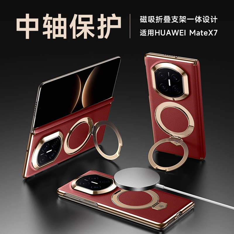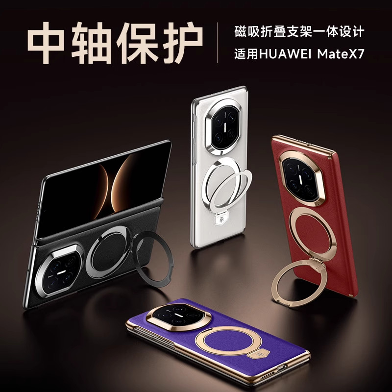 适用华为matex7手机壳磁吸支架x7典藏版带中轴铰链保护套x6折叠屏镜头全包防摔x5真皮外壳x3超薄后壳男女新款