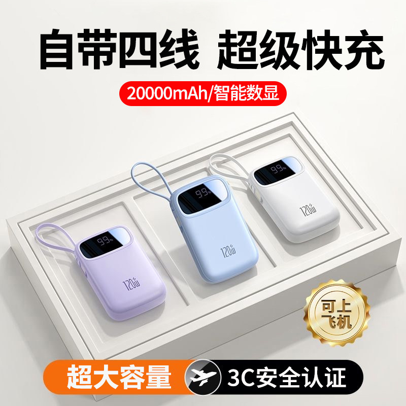 充电宝3C认证正品超级快20000毫安超薄小巧便携2026新款超大容量自带线移动电源适用华为苹果专用官方旗舰店