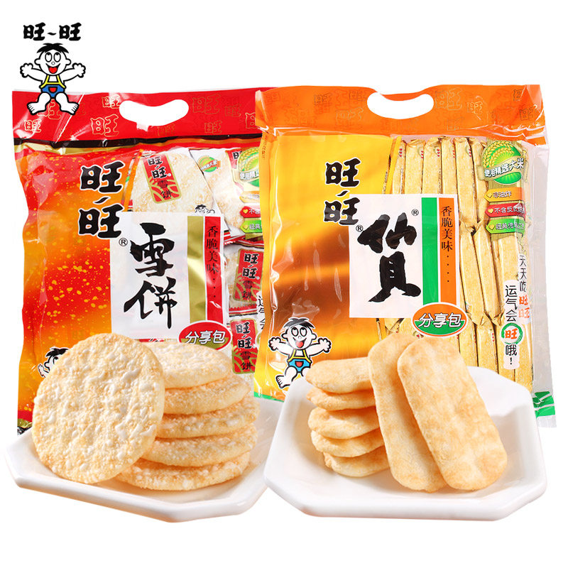 旺旺雪米饼仙贝饼干258g袋装膨化零食品小吃组合装大礼包散装整箱