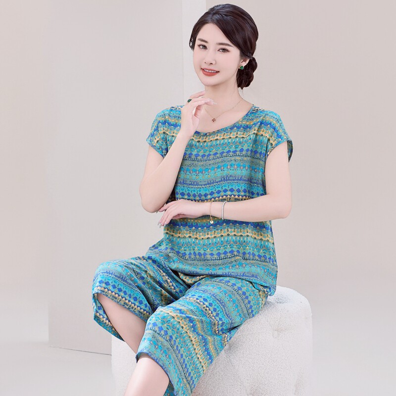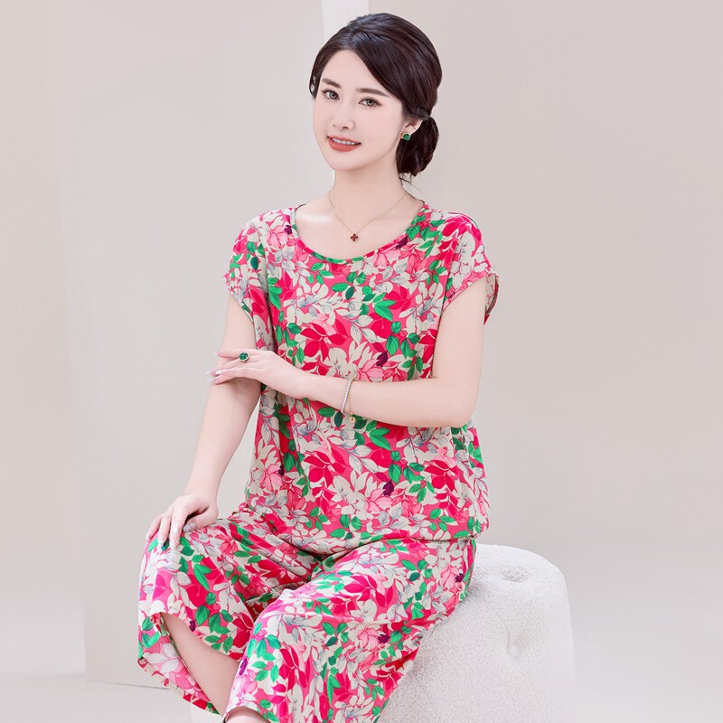 睡衣女款2026新款夏中老年妈妈装棉绸睡衣套装可外穿人造棉家居服