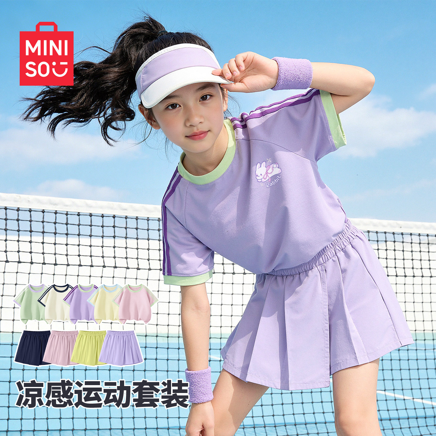 名创优品女童夏装套装2026新款夏季短裙女孩短袖薄款儿童运动服潮