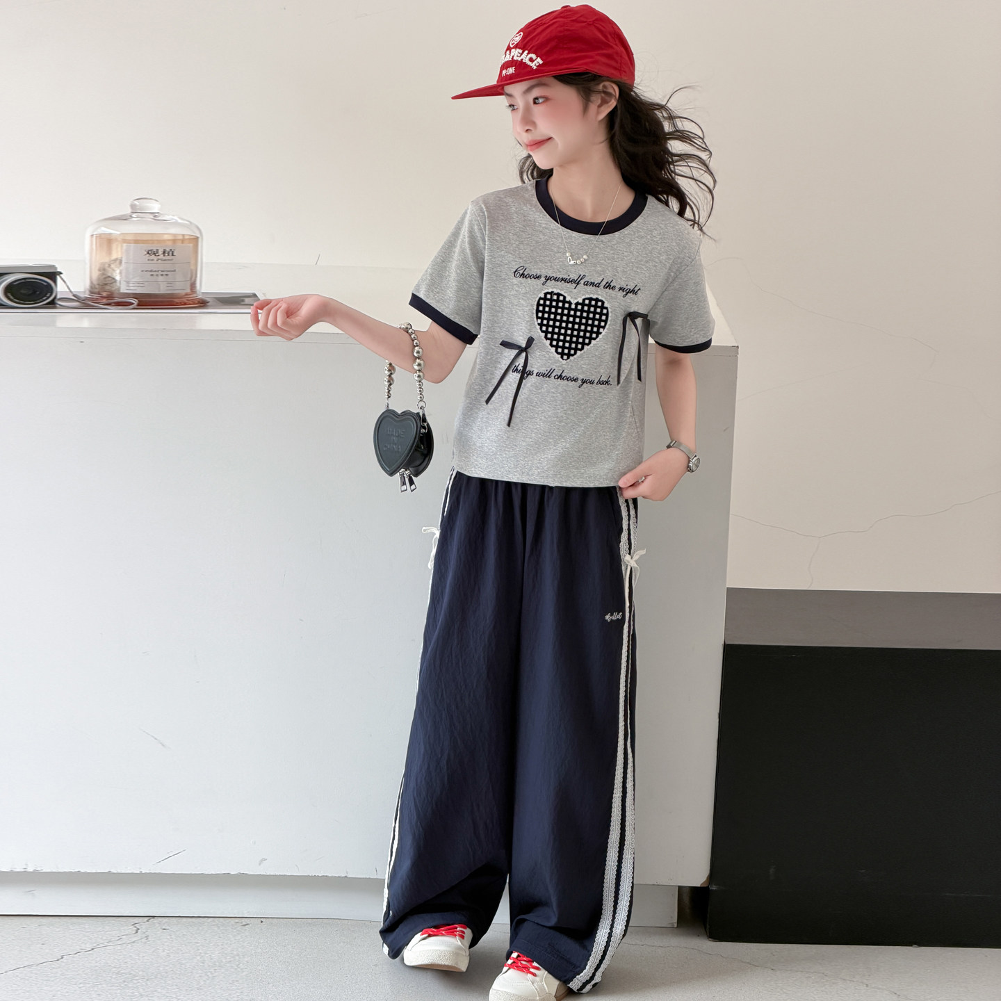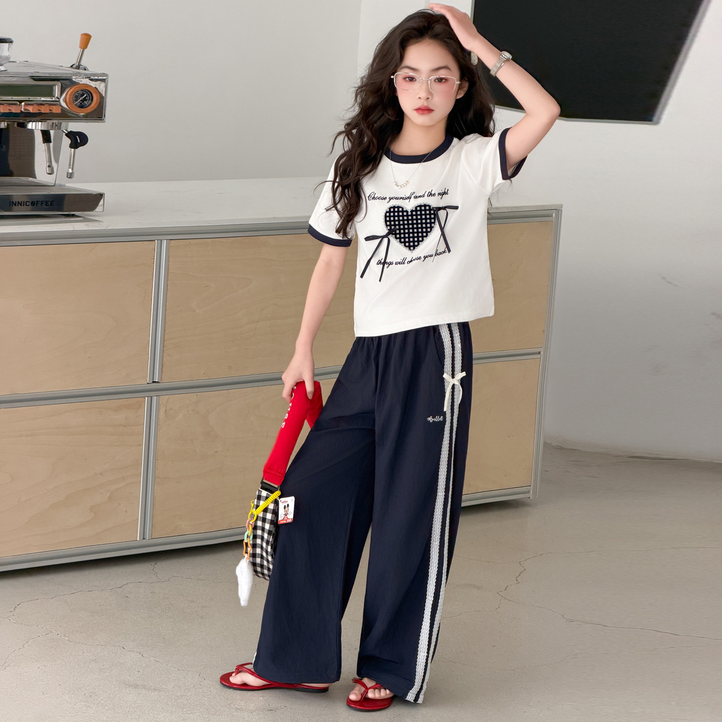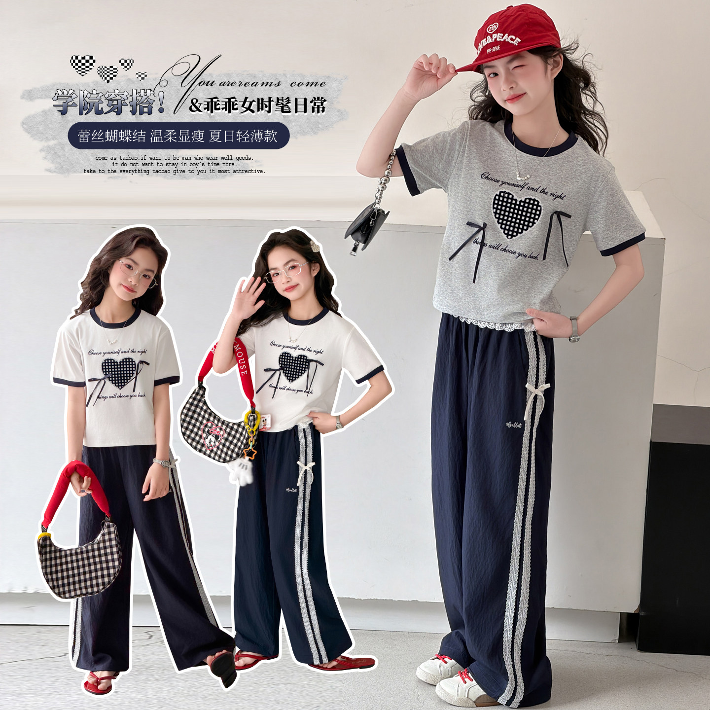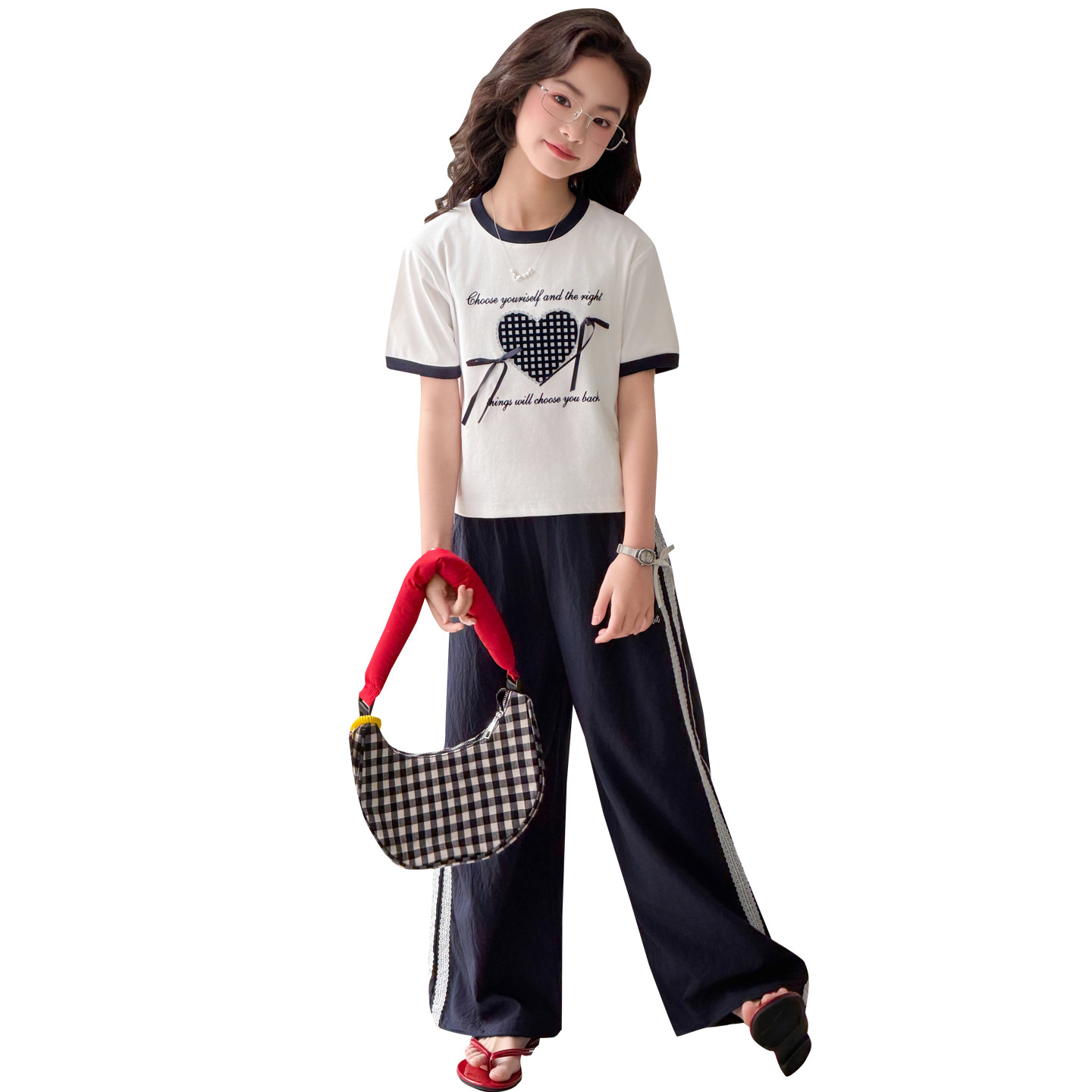 女童夏季休闲套装2026新款洋气夏装短袖T恤女孩阔腿裤运动两件套