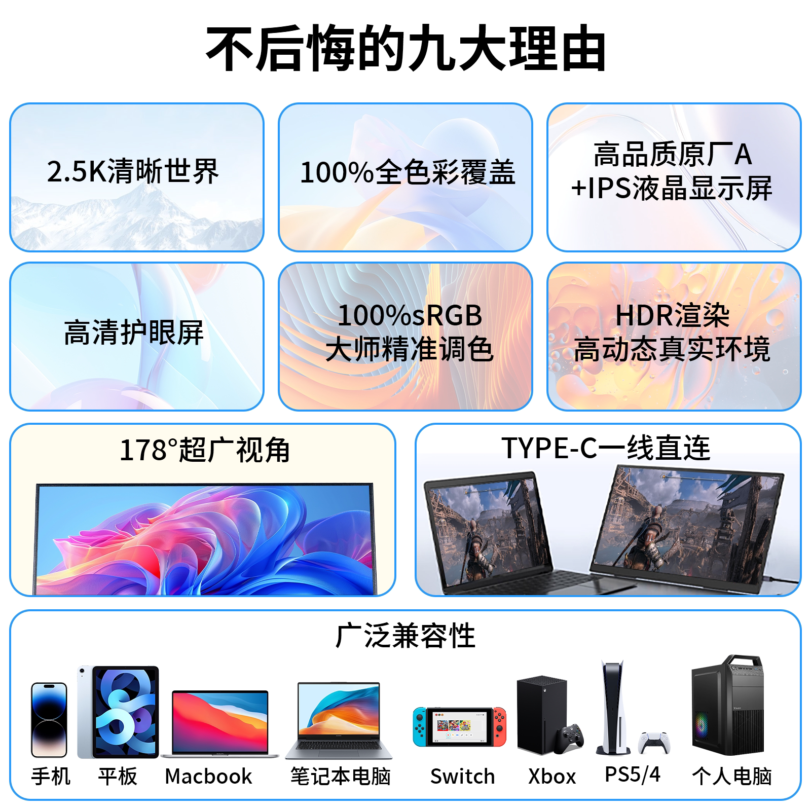 便携显示器IPS 16寸14寸15.6寸144HZ笔记本扩展屏PS4/SWITCH副屏