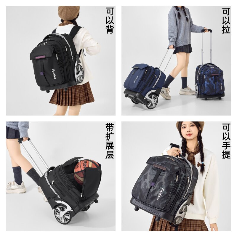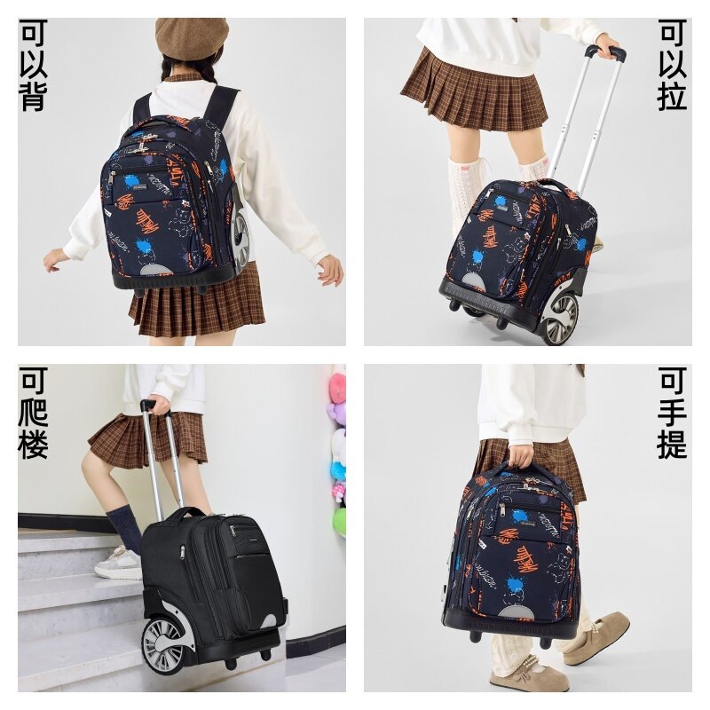 拉杆书包初中生高中大容量拉杆背包男女通用拉杆包爬楼梯行李箱