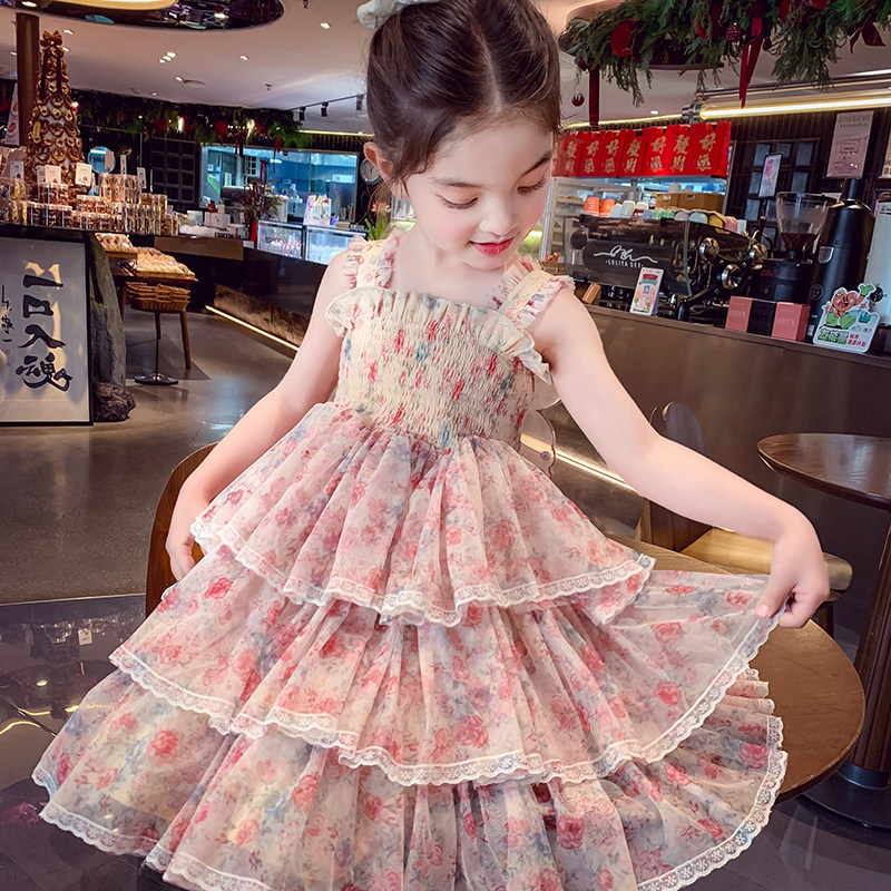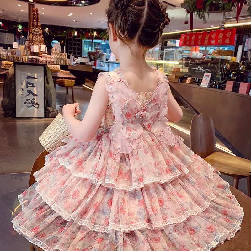 311线报网描述:立体蝴蝶 蛋糕裙 碎花吊带公主裙