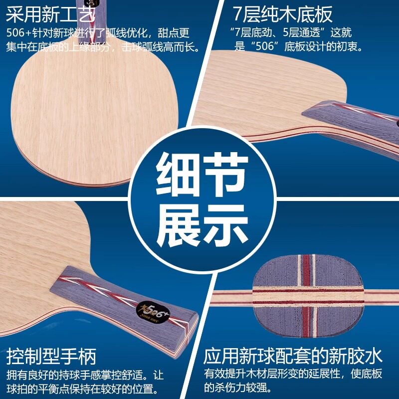 DHS红双喜正品乒乓球底板马龙技术天极506X弧圈快攻专业球拍纯木