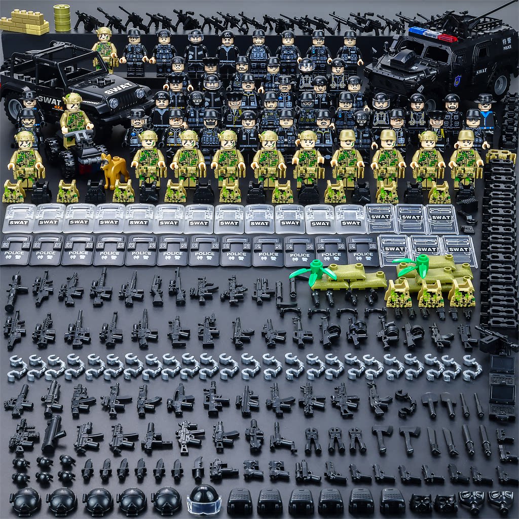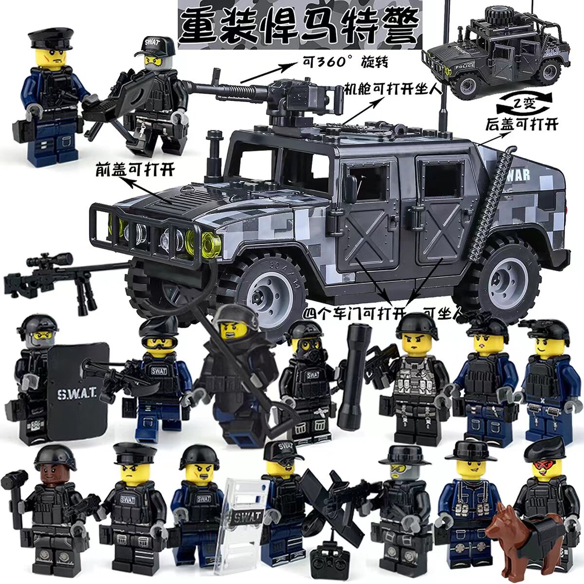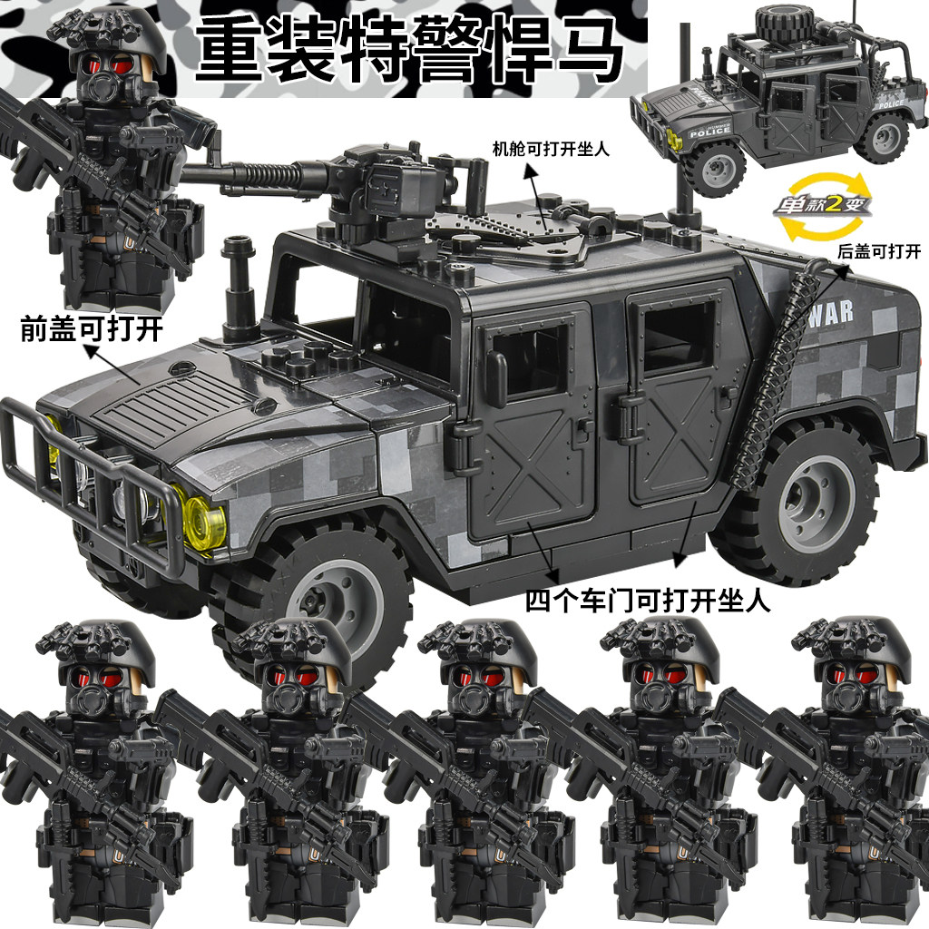 儿童积木玩具特警悍马车军事人仔警察适用于乐高特种兵拼装男孩子