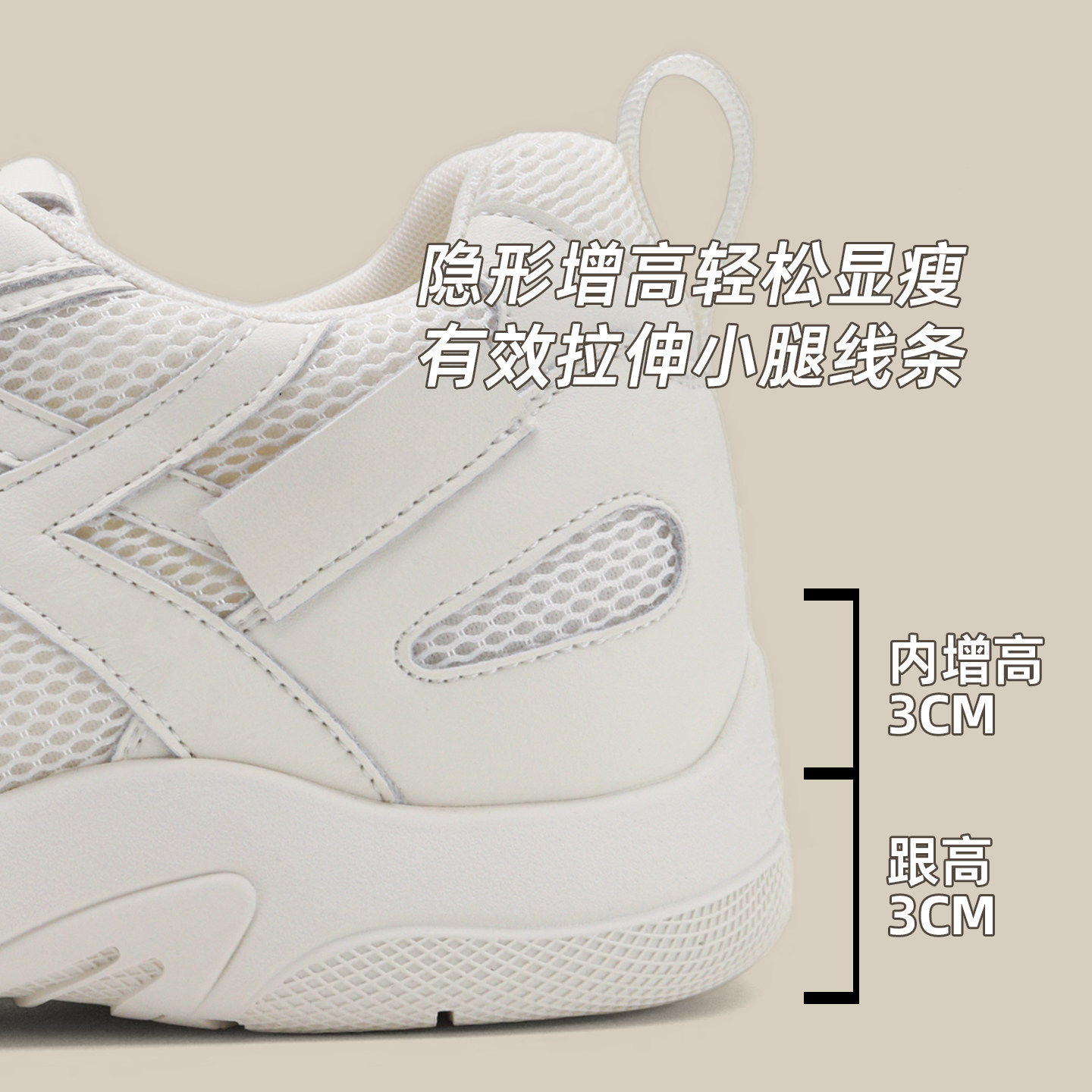 软底阿甘德训鞋女款2026新款小个子内增高网面透气休闲小白鞋百搭