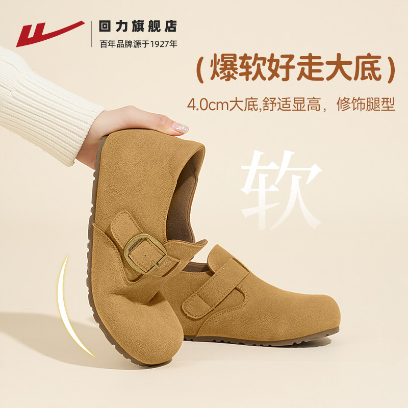 回力厚底勃肯鞋女春2026新款小个子全包拖鞋增高外穿一脚蹬女鞋子