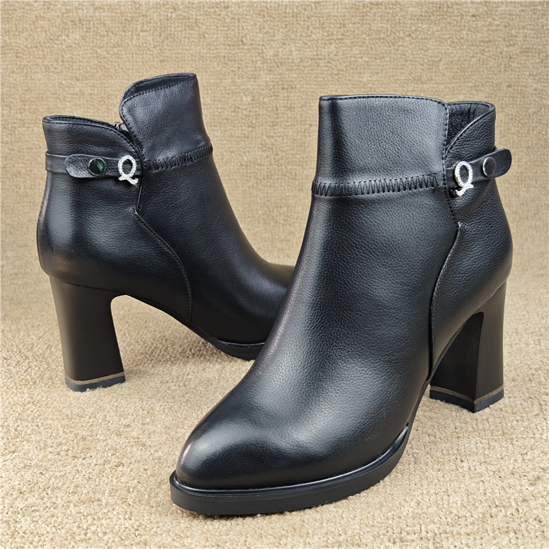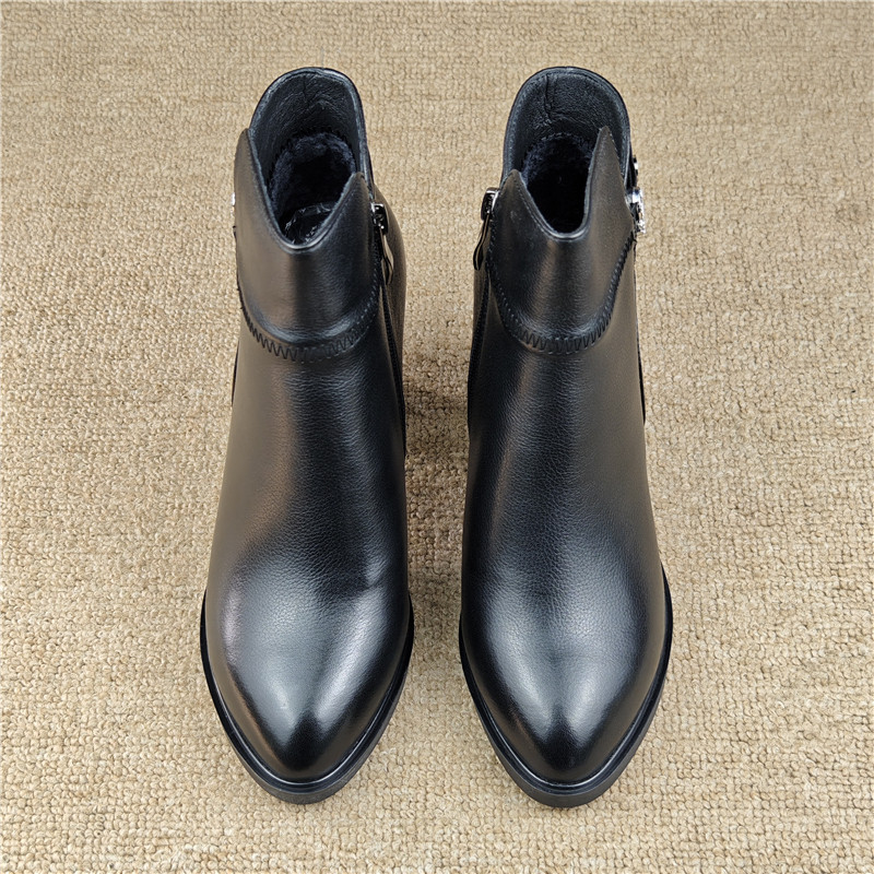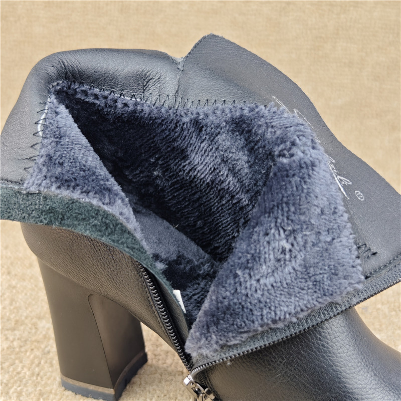 品牌清仓撤柜断码女鞋头层牛皮女短靴侧拉链高跟时装靴加绒女棉鞋