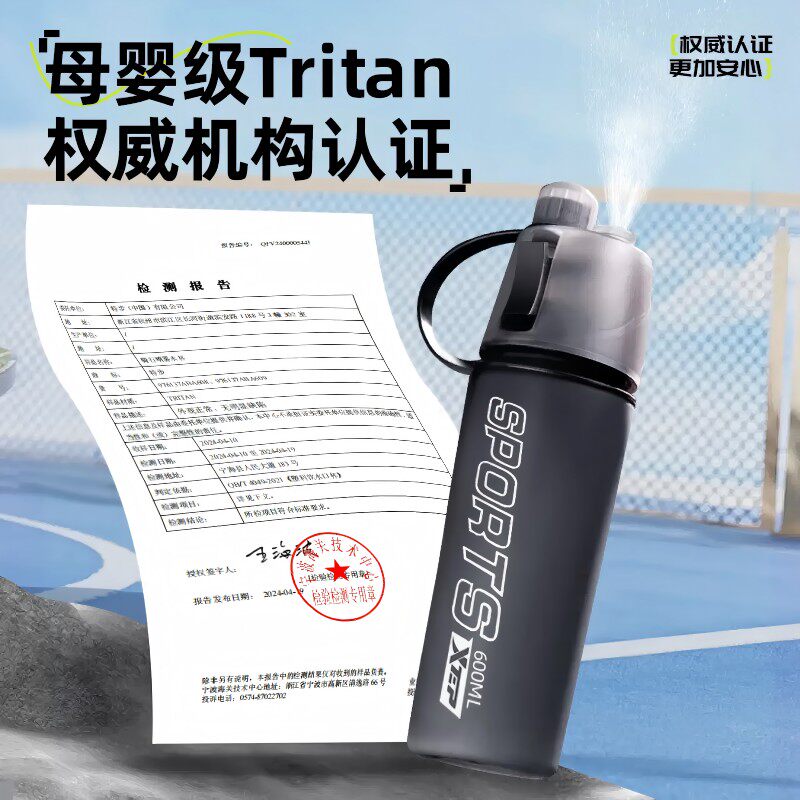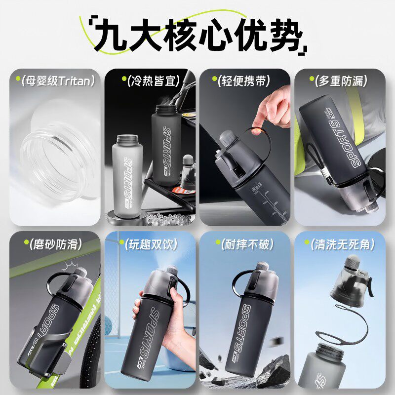 特步喷雾水杯儿童学生户外专用夏季补水降温大容量便携式水壶骑行