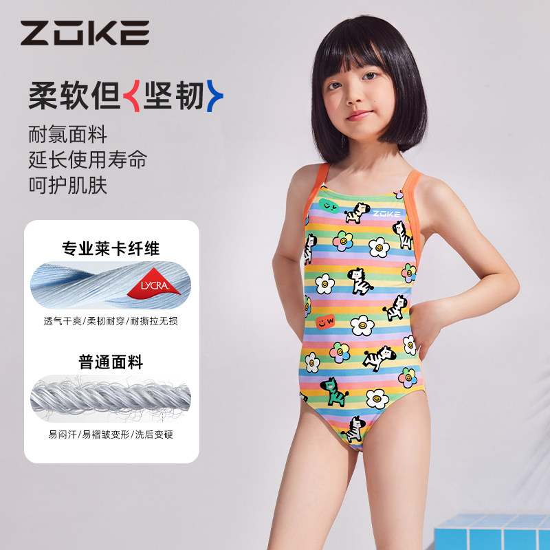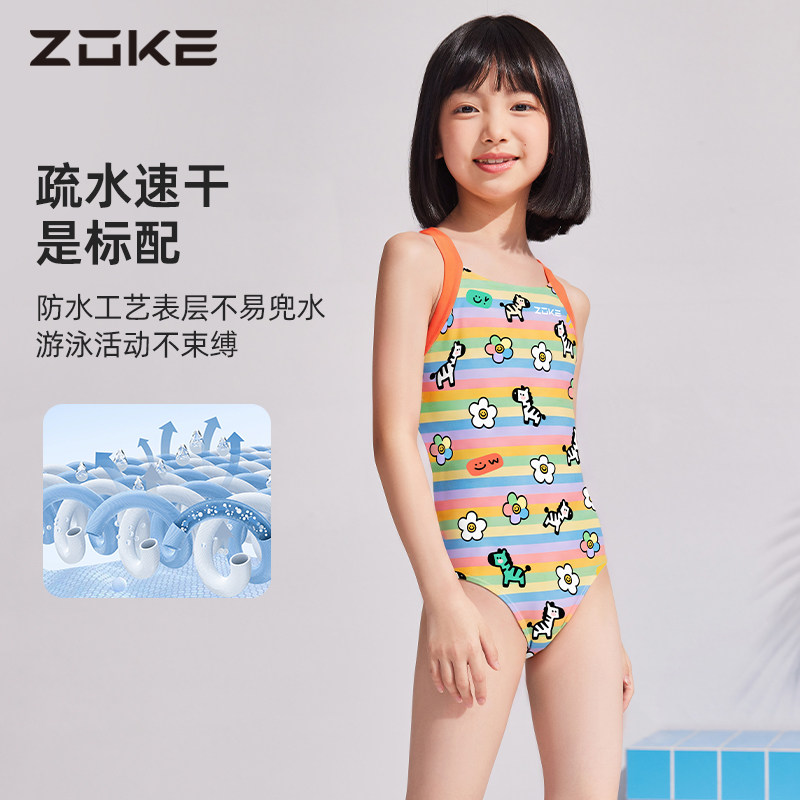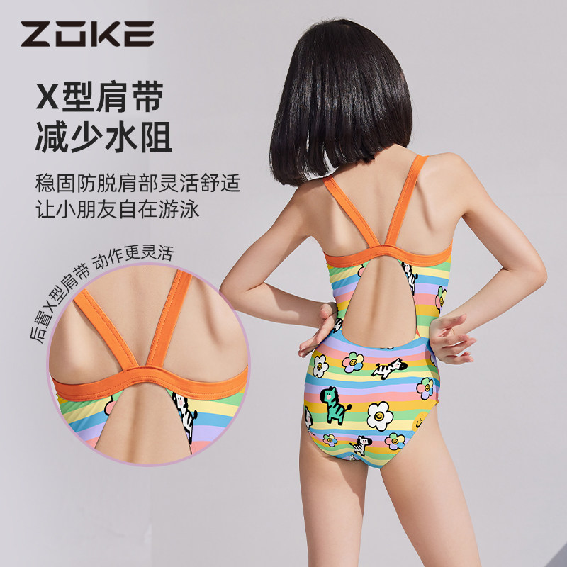 zoke洲克儿童泳衣女童中大童女孩专业竞速训练带胸垫连体三角泳衣