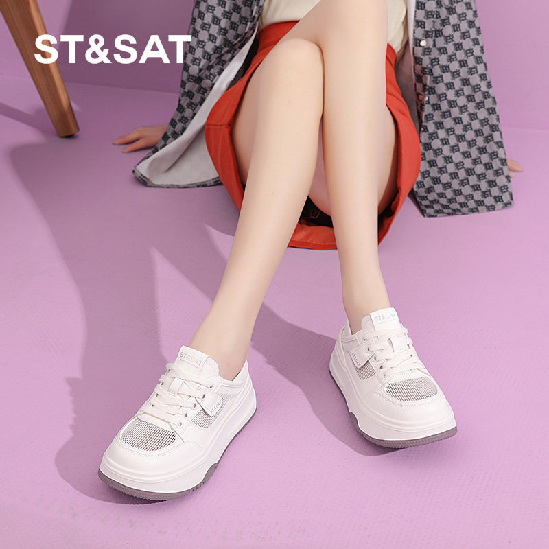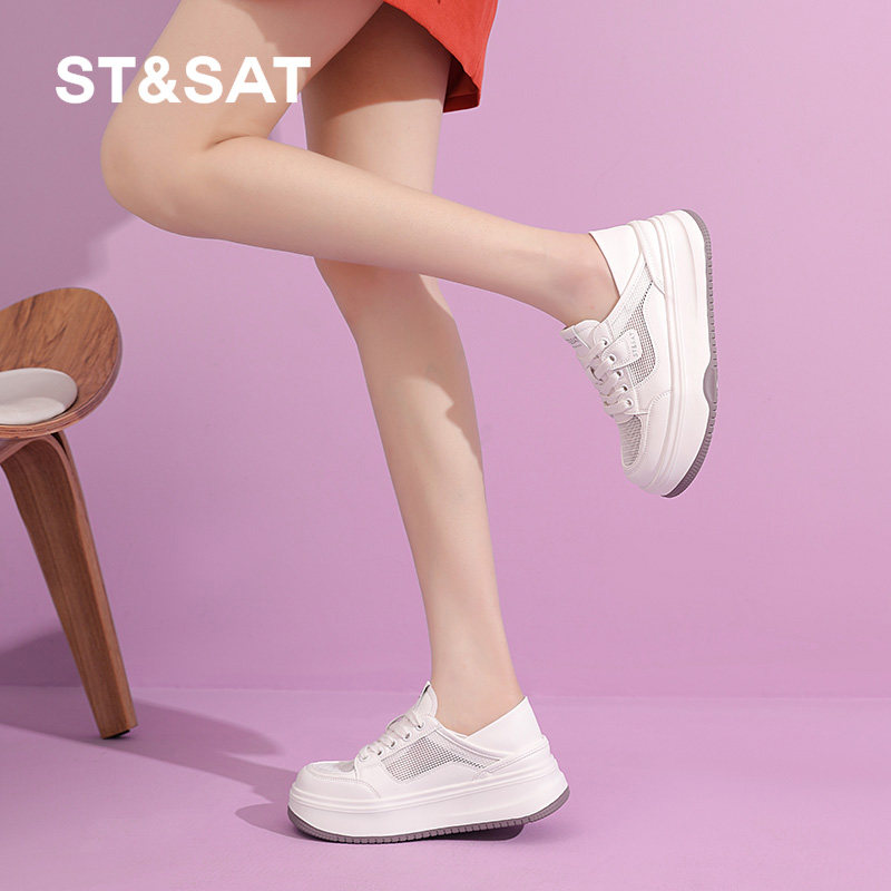 星期六厚底小白鞋女鞋春夏季新款简约百搭休闲鞋女士透气网面鞋子