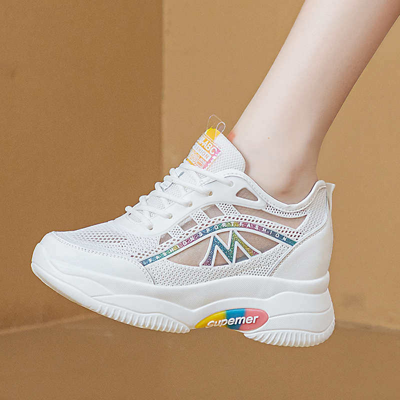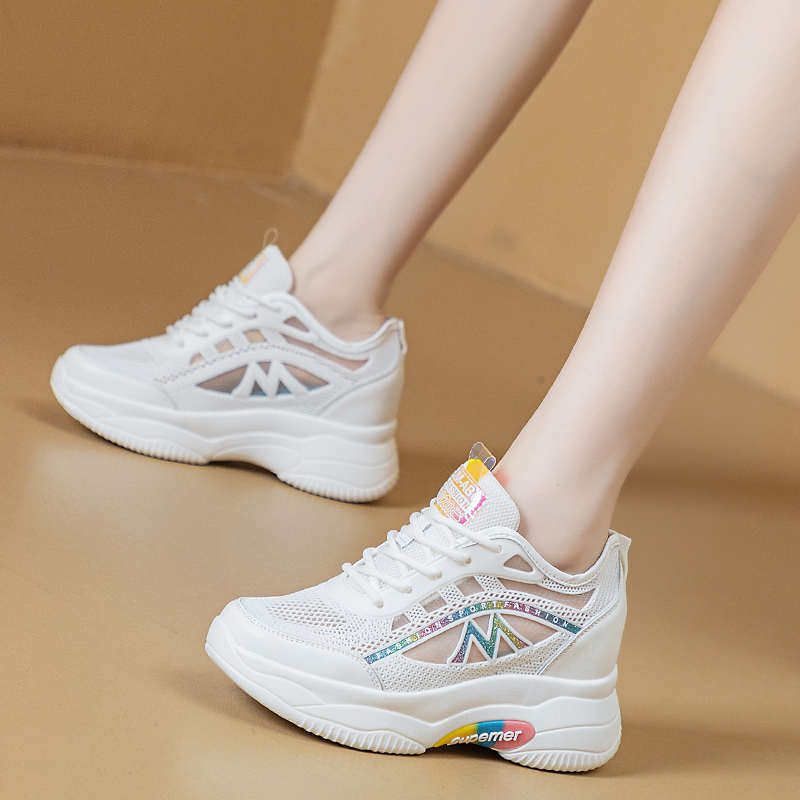 轻便8cm增高休闲鞋女款2025新款夏季超轻单网透气内增高运动鞋女