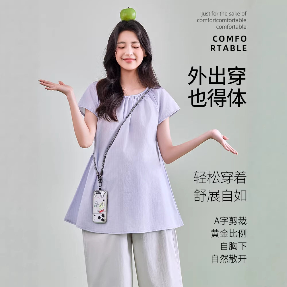 孕妇娃娃衫外穿衬衫女孕妇装夏季新款薄款A字版下摆宽松减龄上衣