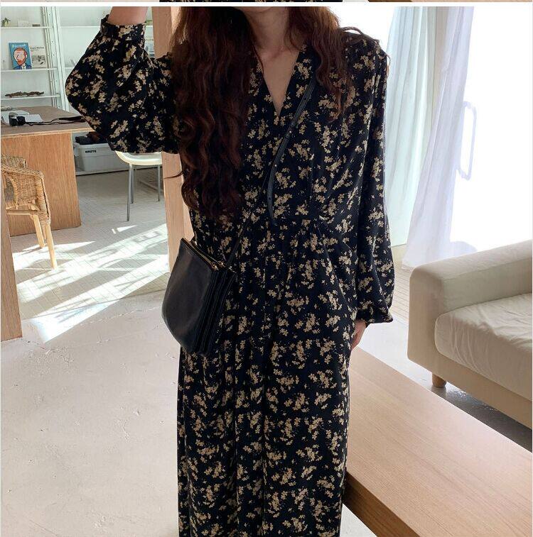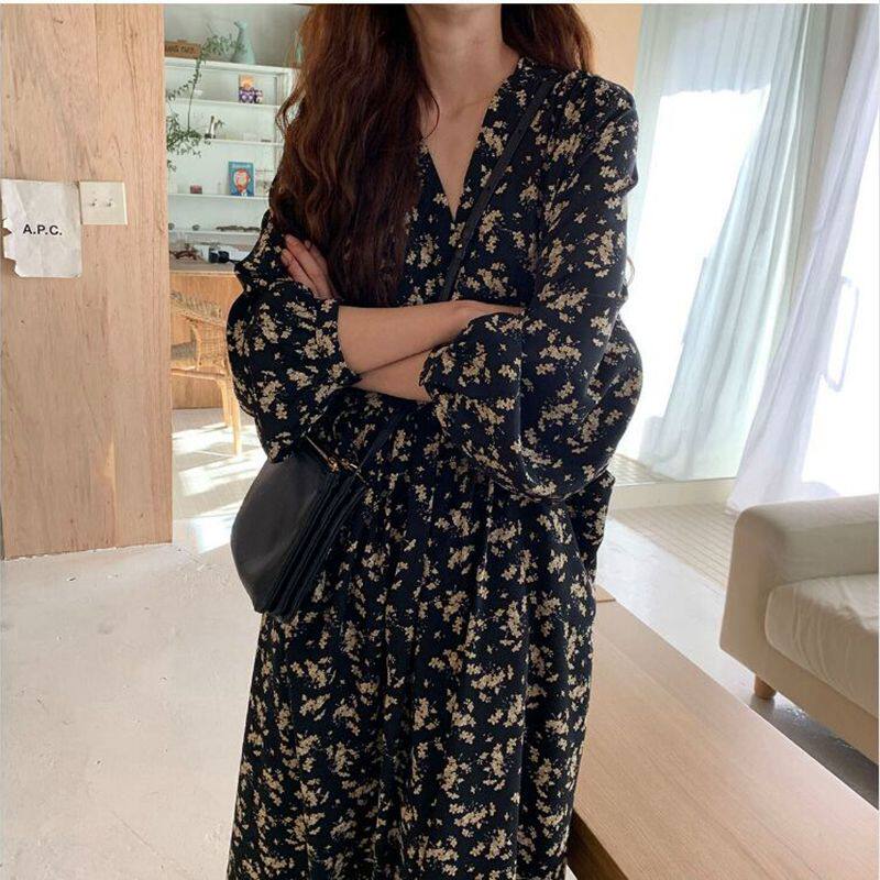 高个子女长裙气质春秋170加长版到脚踝长款法式雪纺碎花连衣裙175