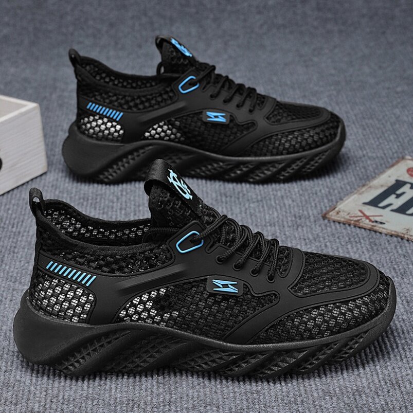 男鞋夏季网面透气薄款网眼镂空网鞋男士跑步轻便黑色休闲运动潮鞋