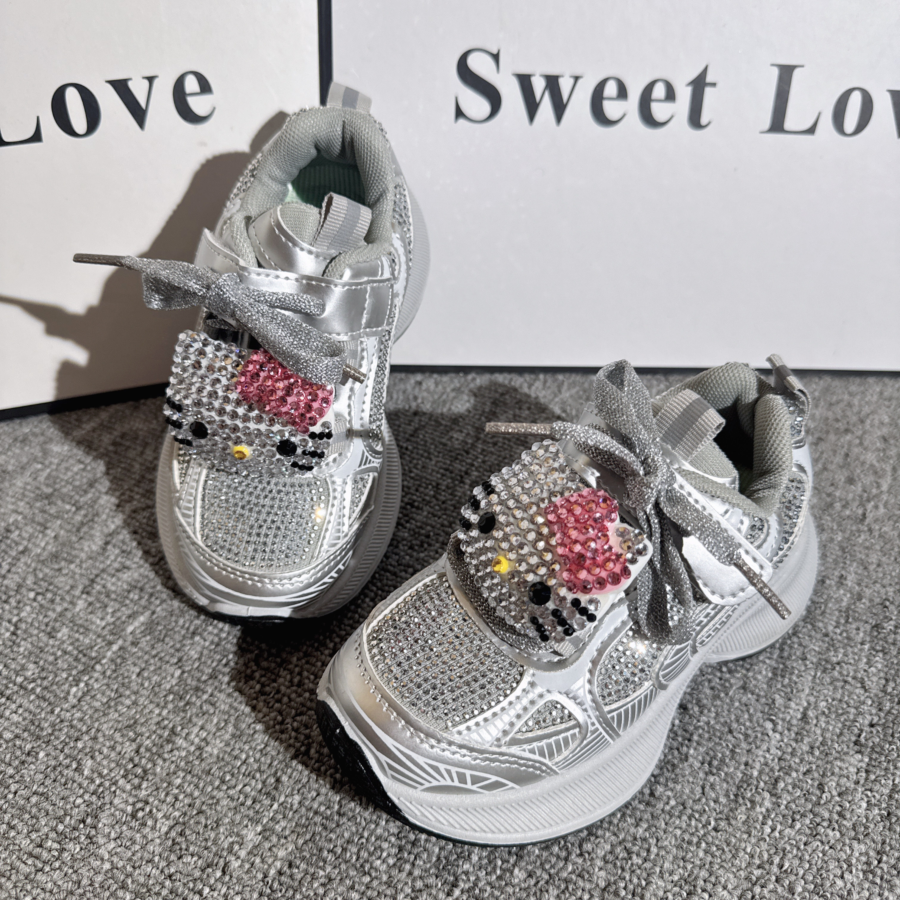 重工水钻KT猫女童运动鞋2026春秋新款儿童老爹鞋中大童休闲跑步鞋