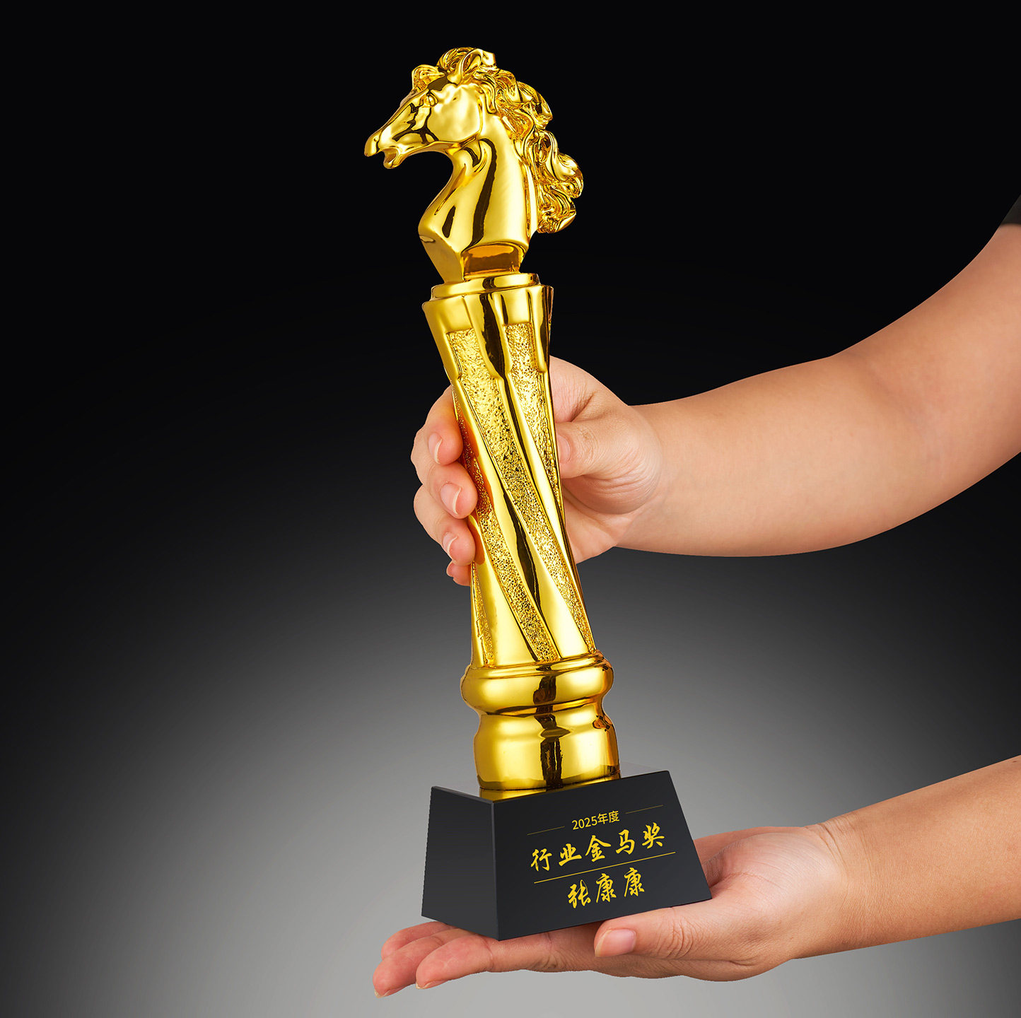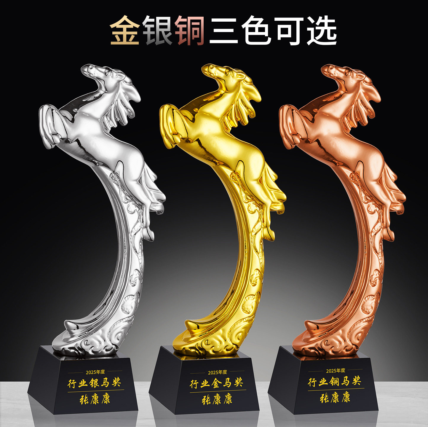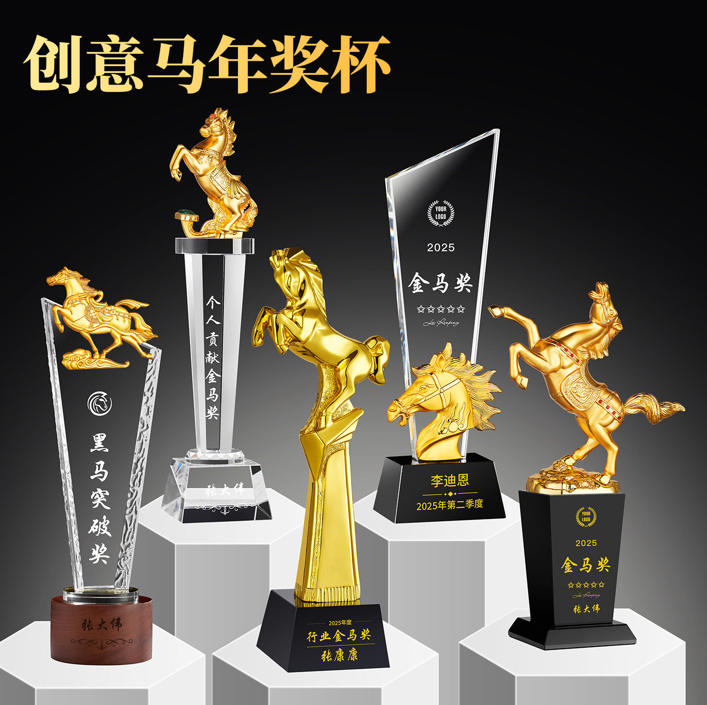 广州次日达2026马年水晶奖杯定制公司企业业绩万马奔腾马造型纪念