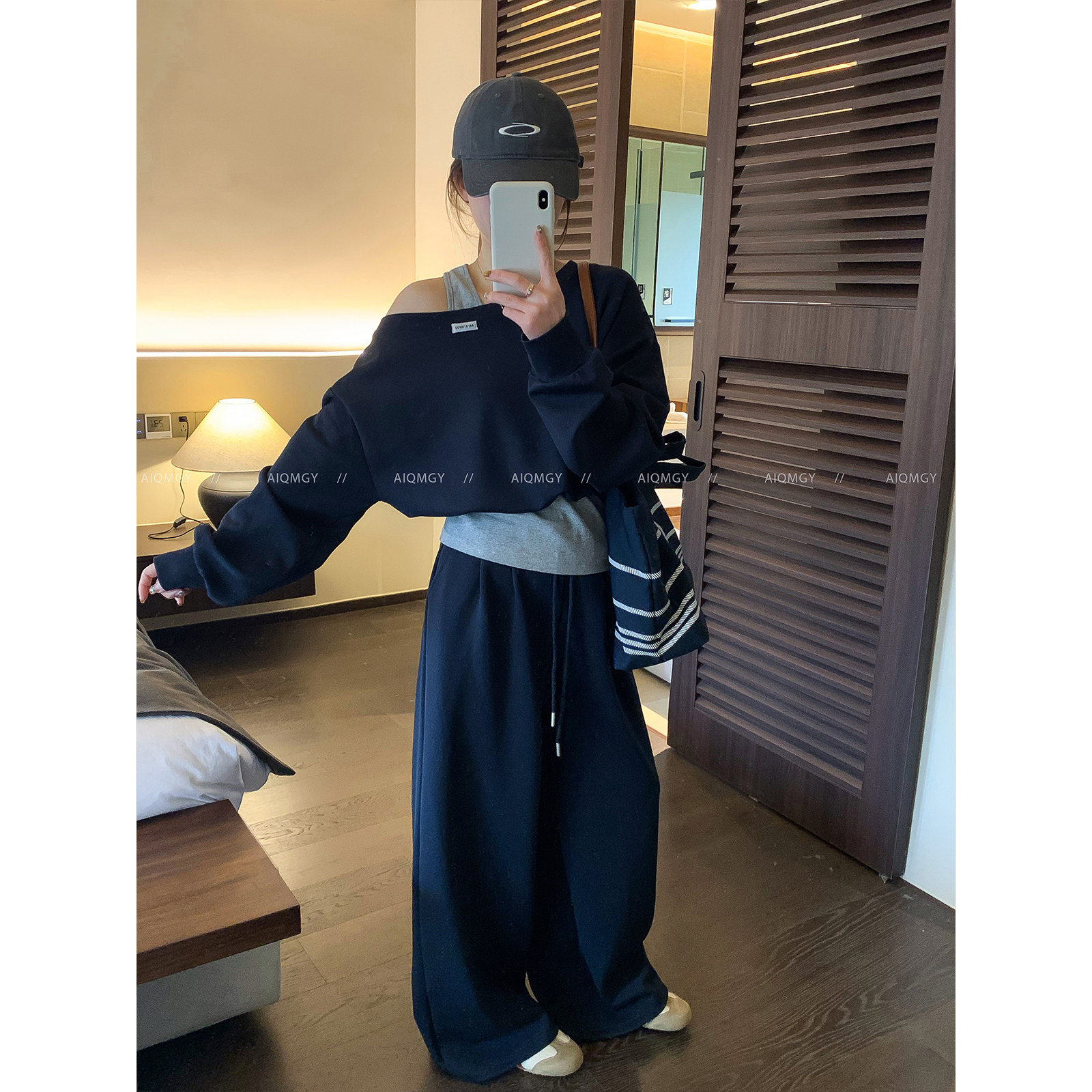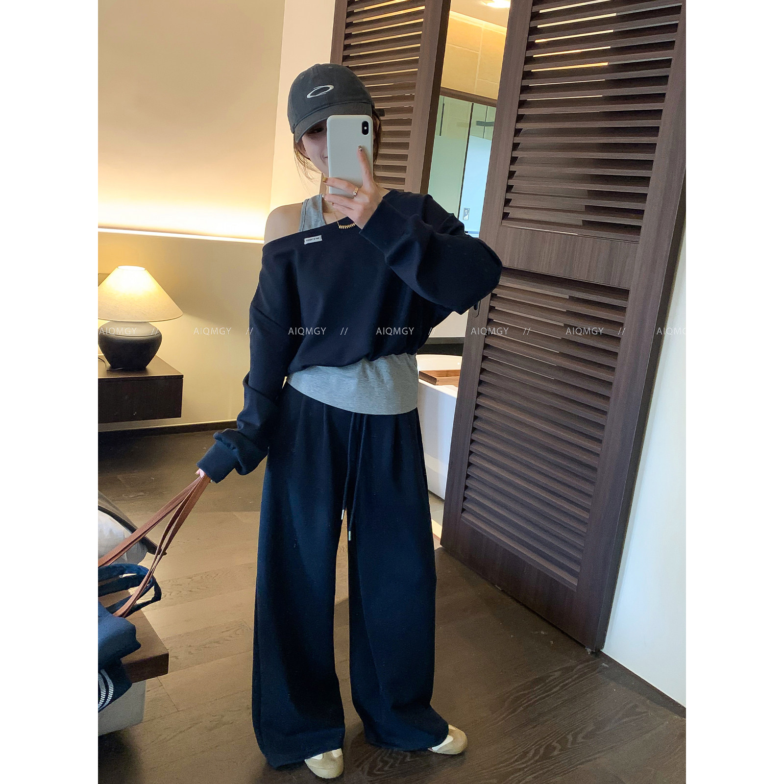 爱情魔鬼鱼 时尚套装女2026春季新款长袖露肩上衣阔腿长裤两件套