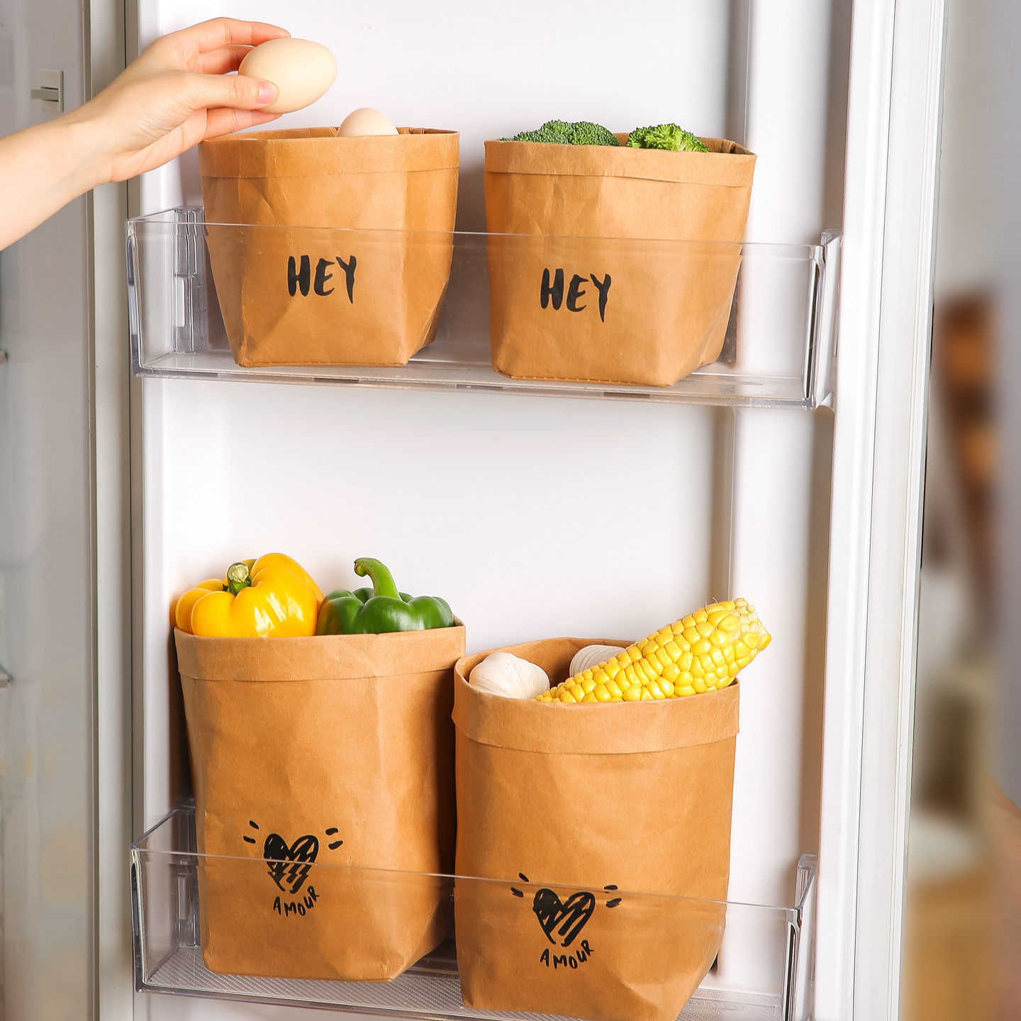 川岛屋冰箱牛皮纸收纳袋可水洗防水防油食品级加厚蔬菜水果食品袋
